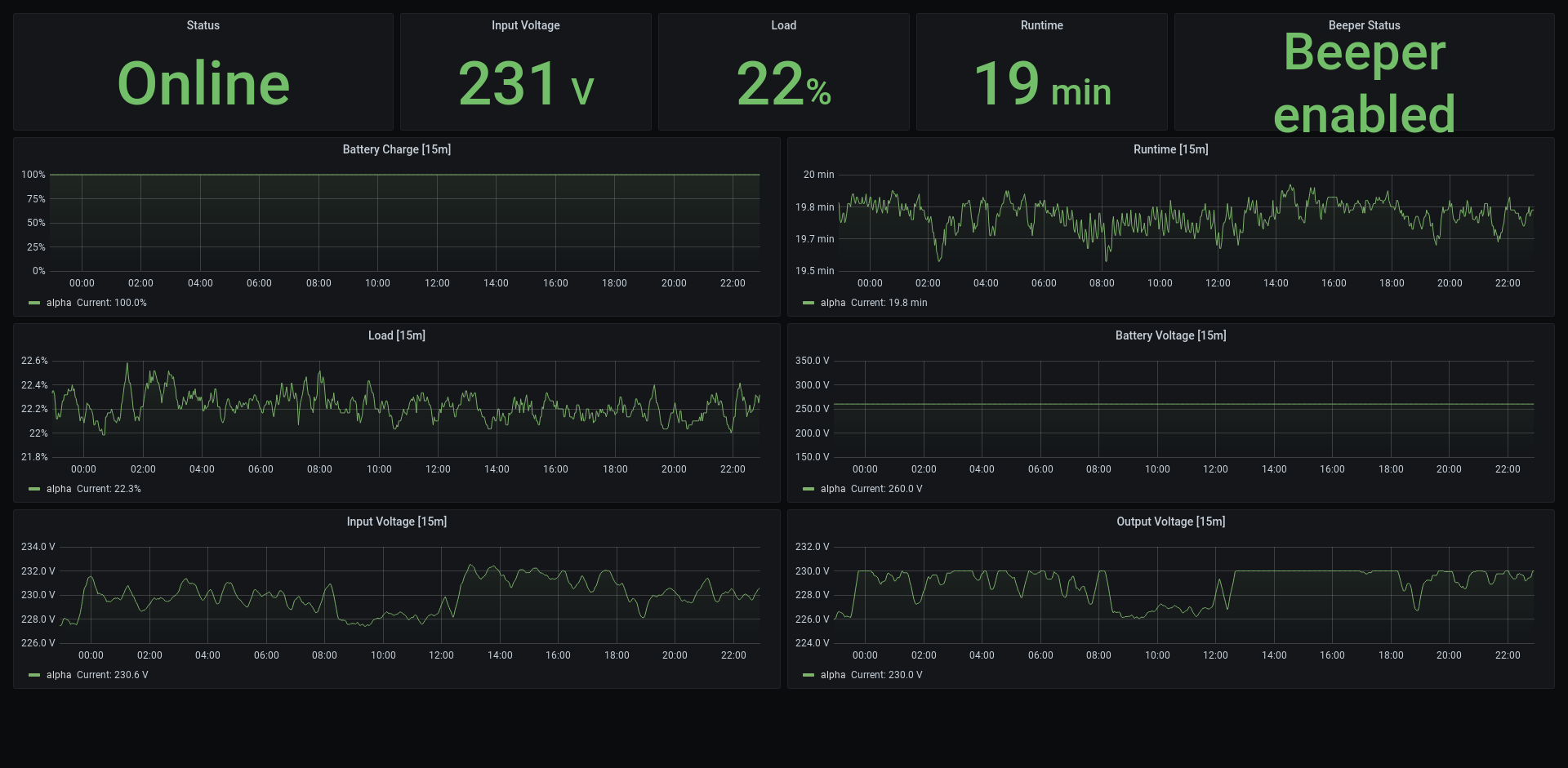 Example dashboard for HON95's Prometheus NUT Exporter.