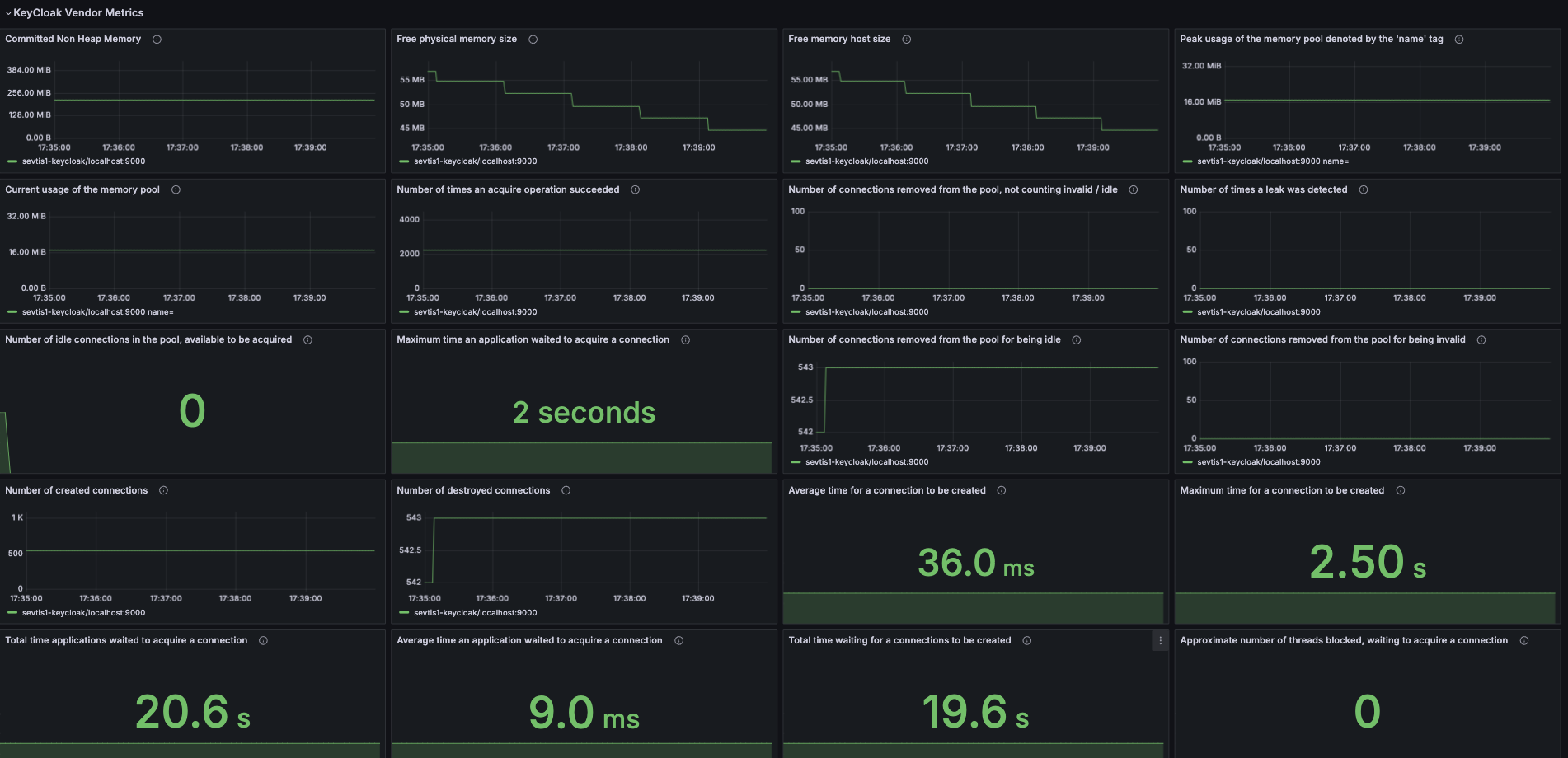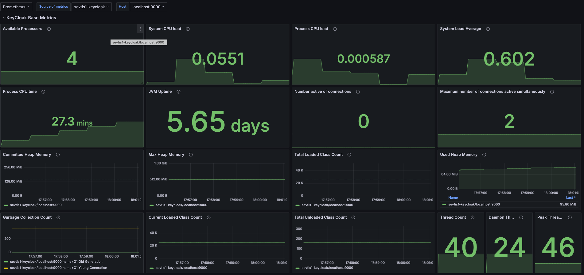 Visualize the corresponding KeyCloak Quarkus MicroProfile metrics from the selected Grafana data source.