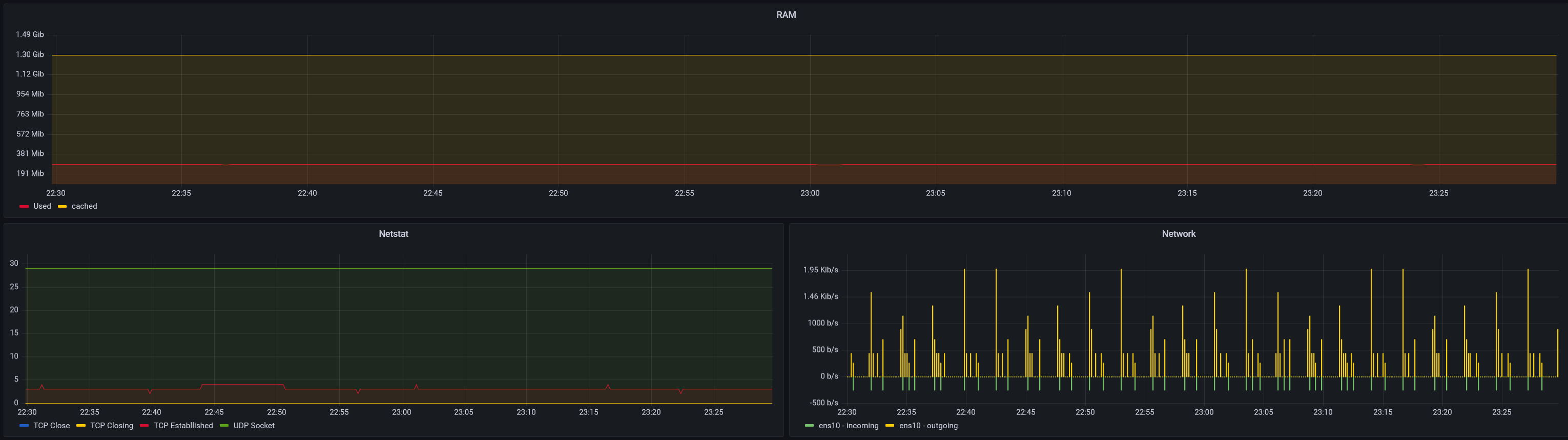 On this Dashboard we used Telegraf, to store Data on InfluxDB. We additionally use net & netstat