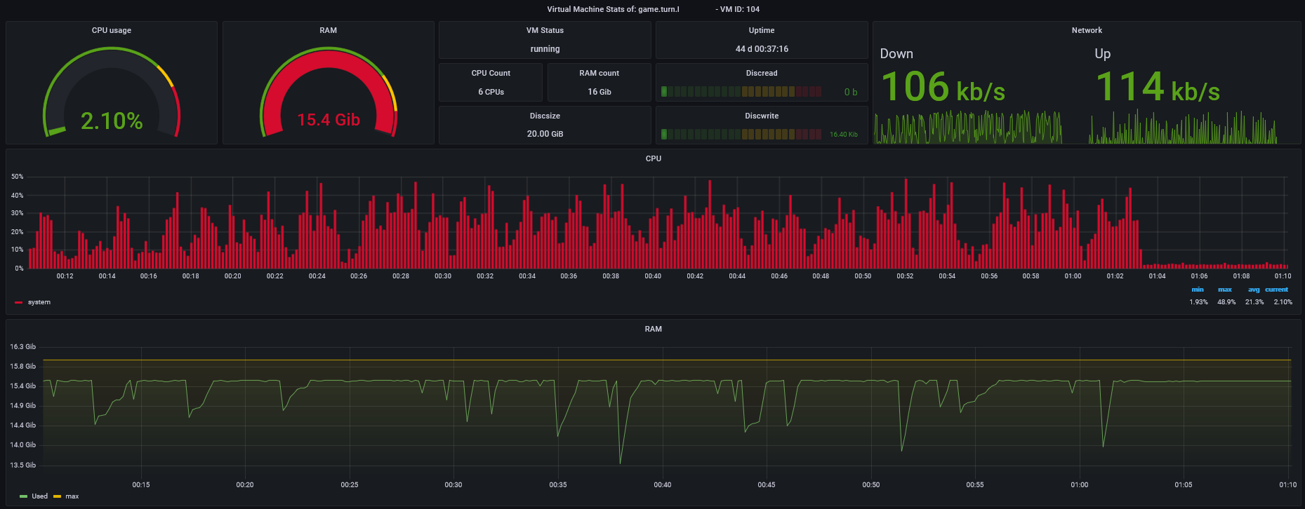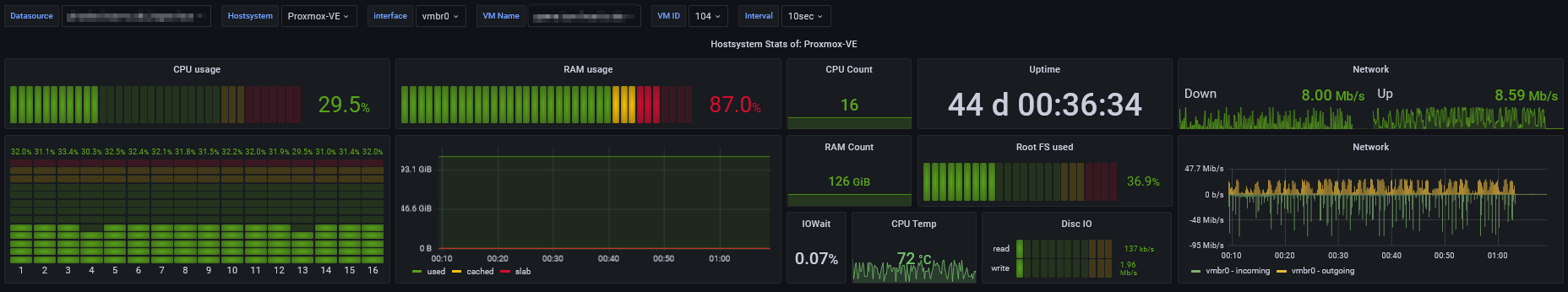 A Dashboard for monitoring a Proxmox Host and a single VM