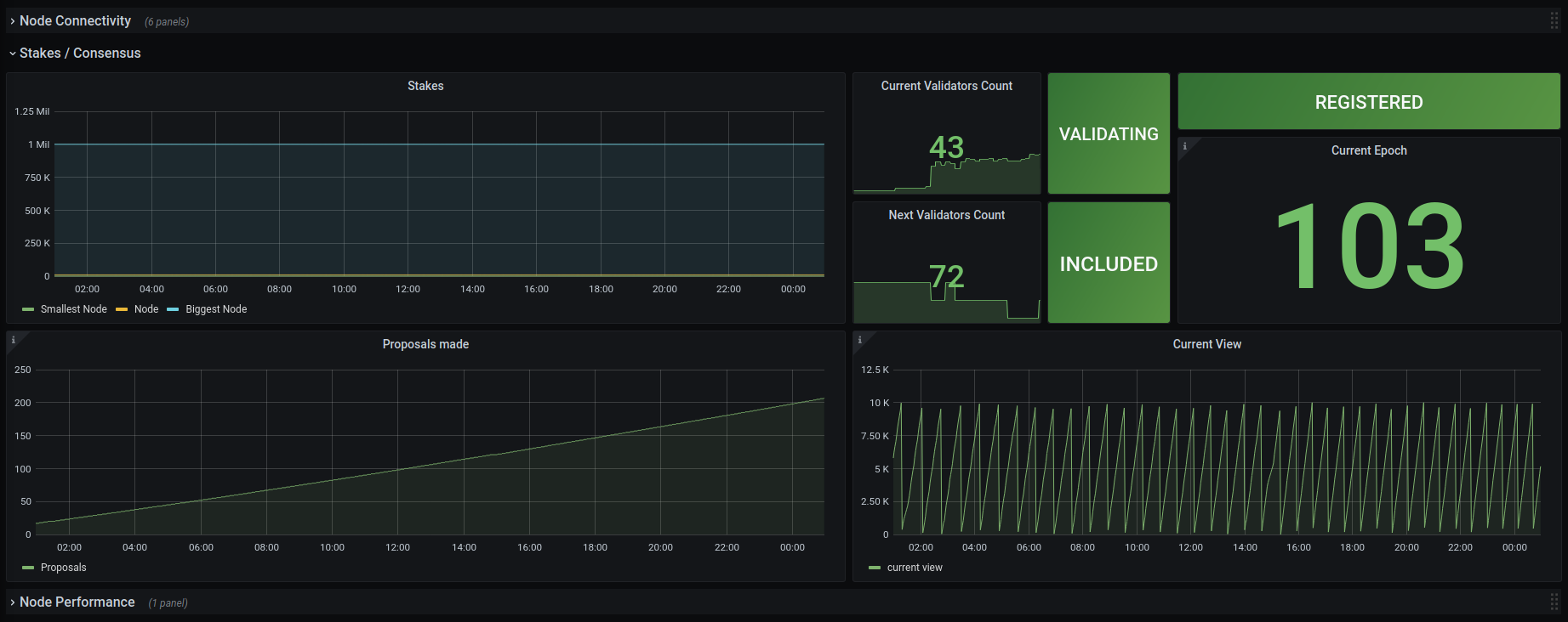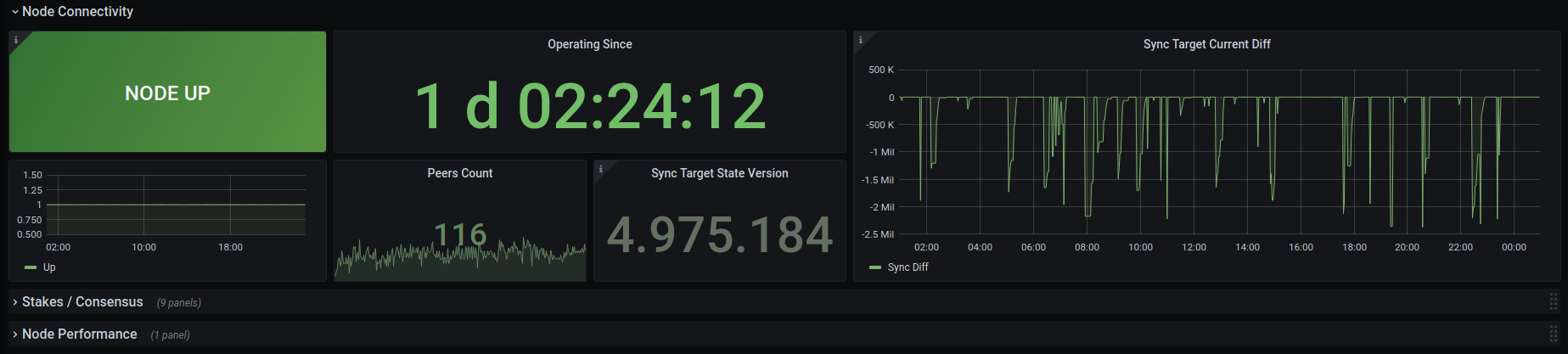 A dashboard for validator nodes on the radix public network. To use with the radix node exporter at https://github.com/mbiandix/radix-node-exporter or any other providing the needed metrics as named in https://github.com/mbiandix/radix-node-exporter/blob/main/src/metrics.py