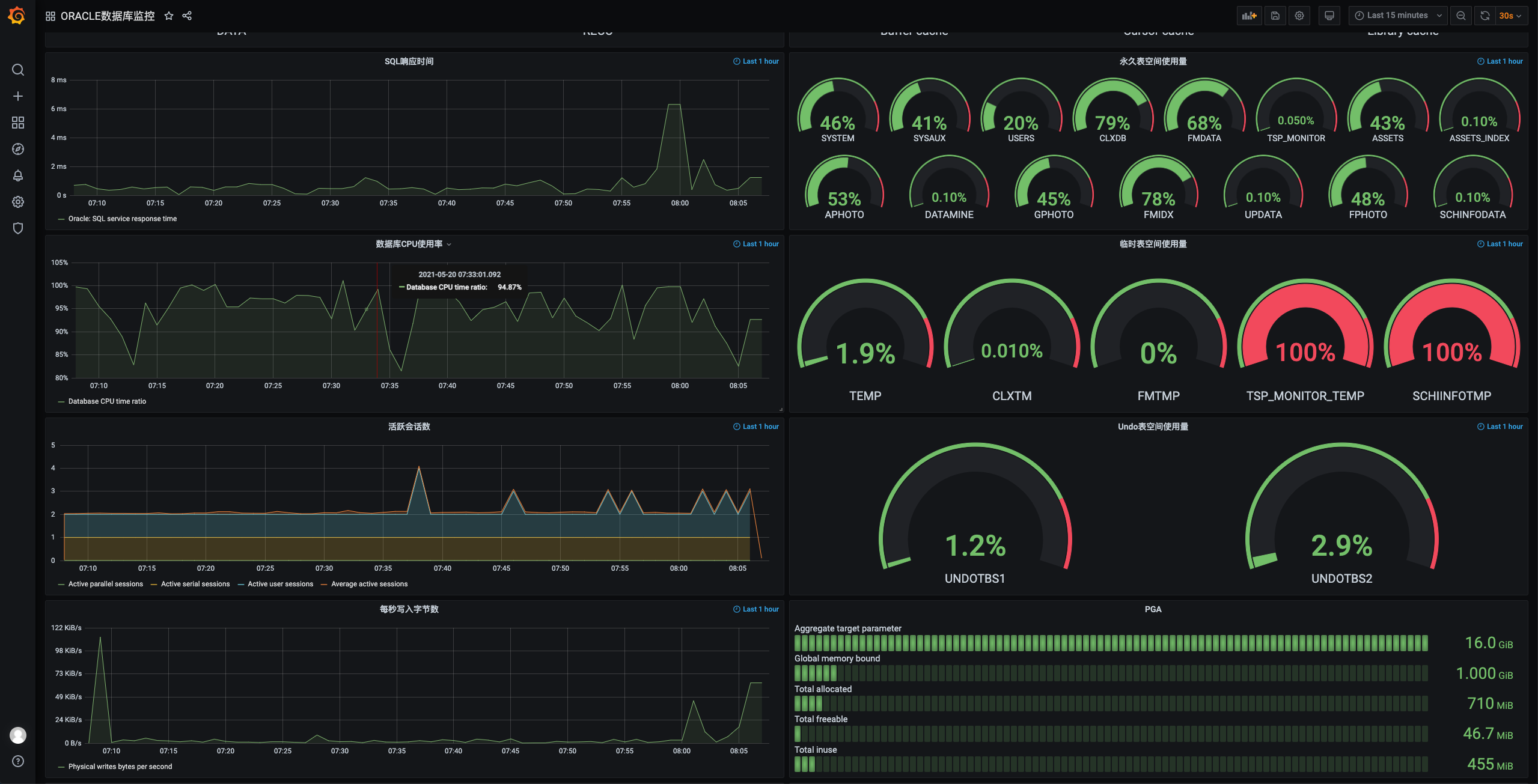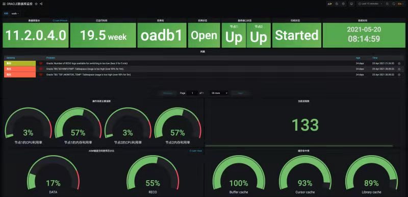 配合zabbix监控模板,对oracle数据库的关键指标进行监控,可在一个页面内切换查看多个实例。