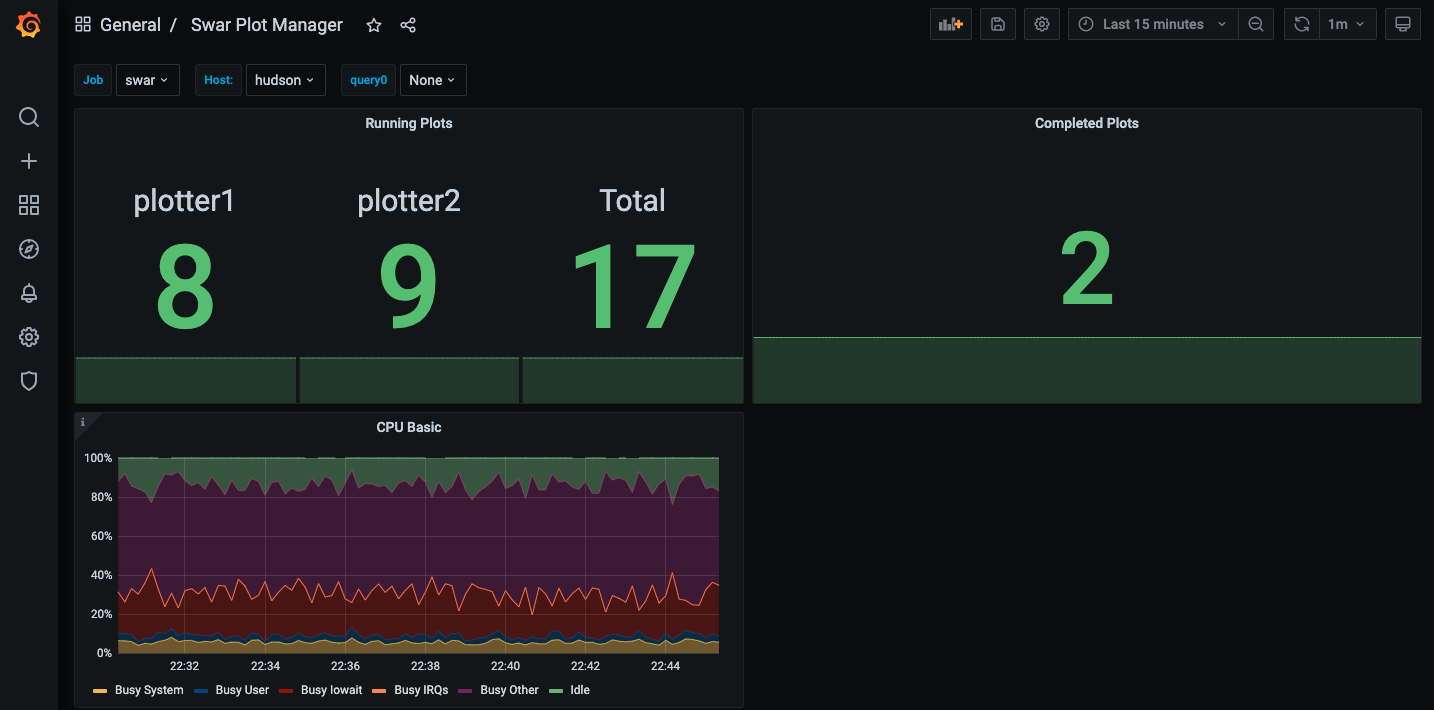 Presents metrics from Swar-Chia-Plot-Manager and nodeExporter.