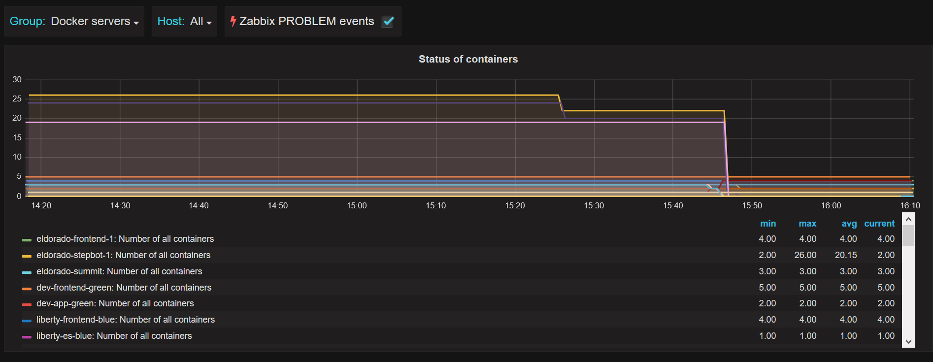 Visualize status of Docker infrastructure monitored by Zabbix.