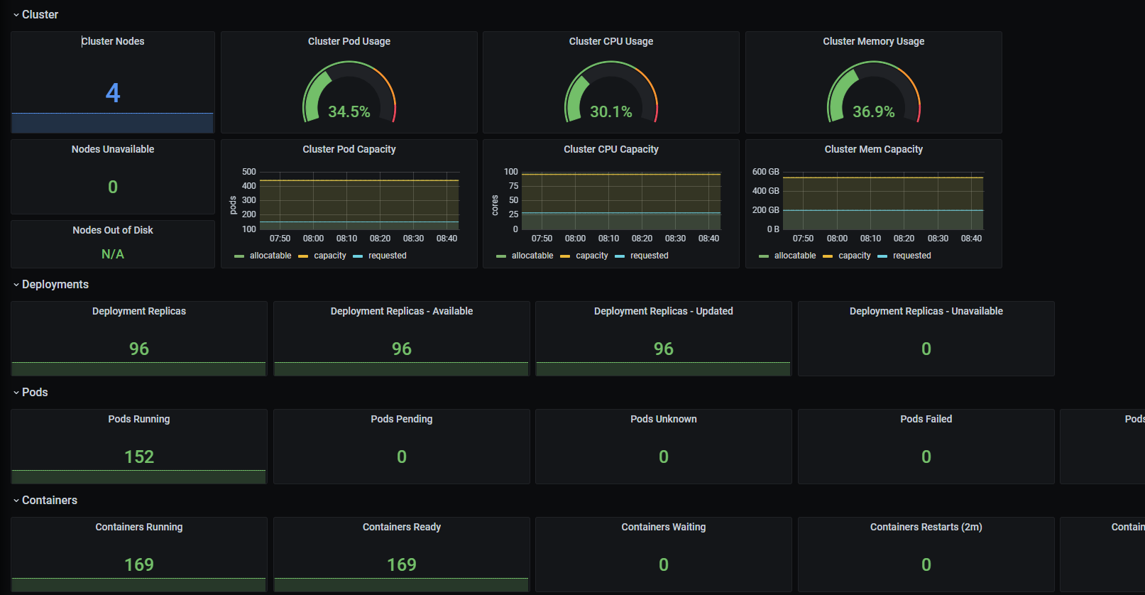Dashboard for Kubernetes cluster with Prometheus.