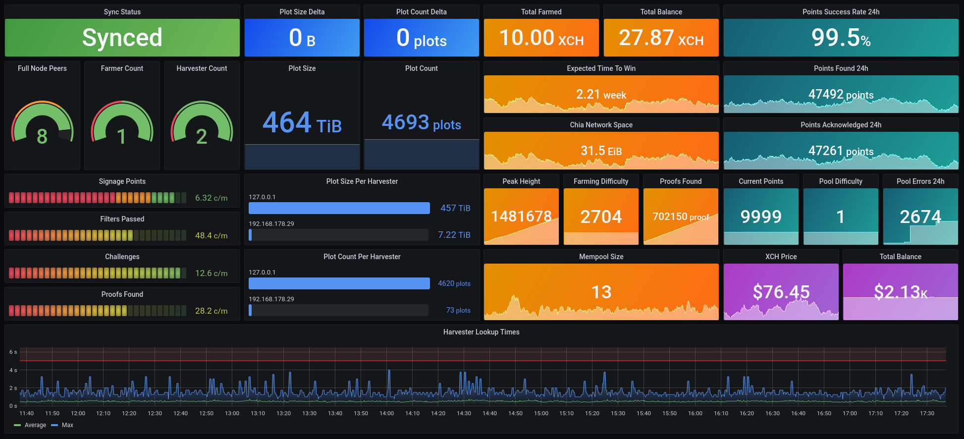 Displays all important metrics from your Chia farming node and all connected harvesters, collected by chia-monitor.