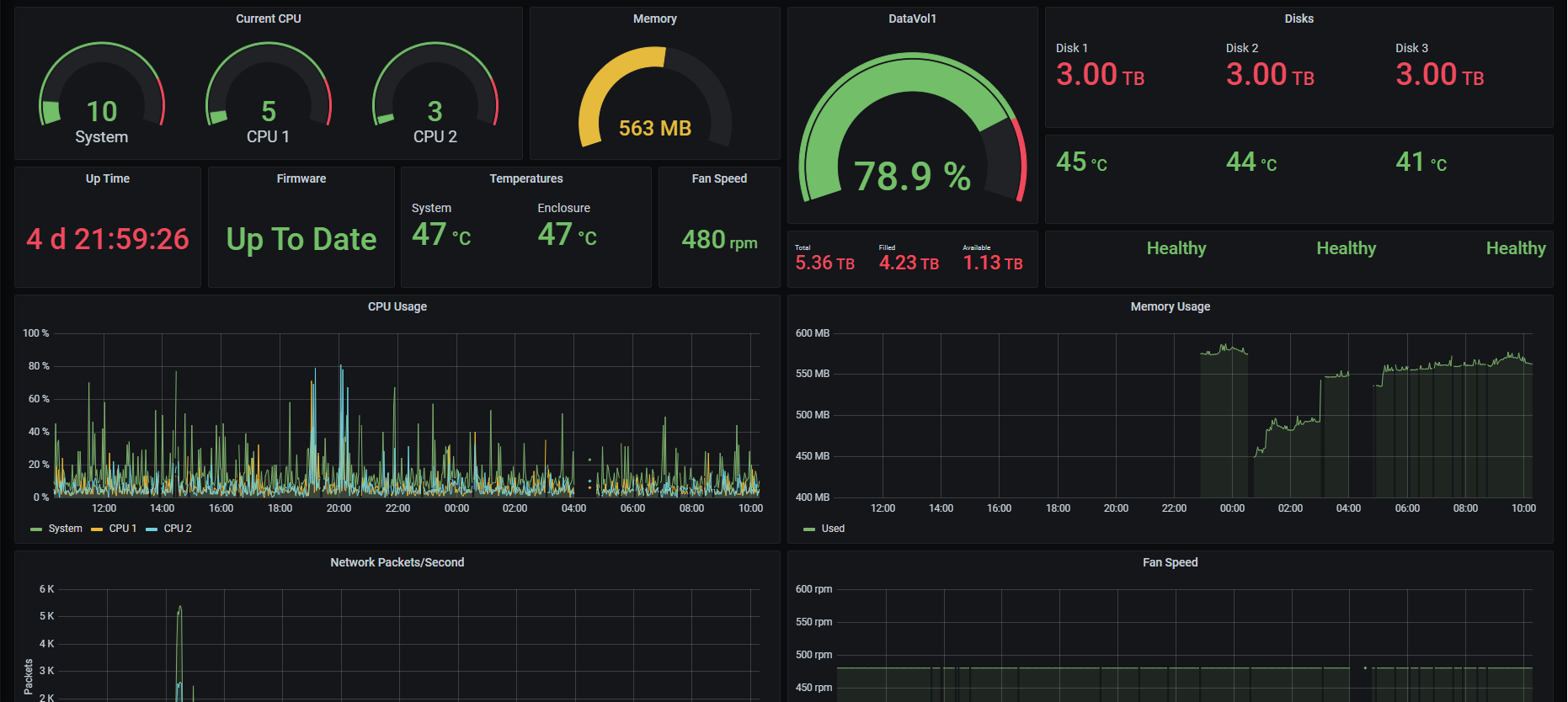 Dashboard to monitor a QNAP NAS with SNMP