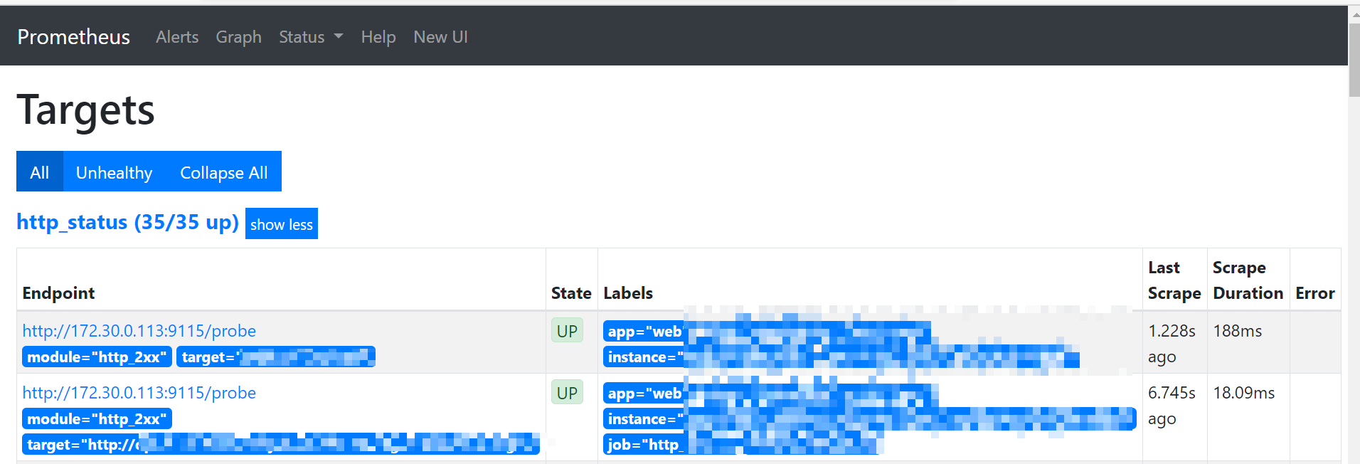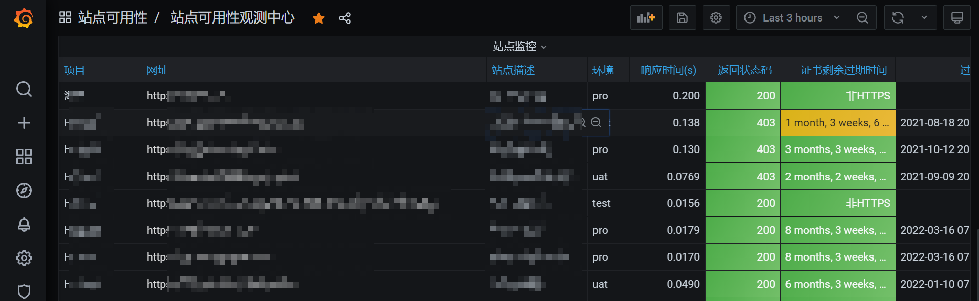 Just one Table Widget to display the Certificate and Connection Status from HTTP Connections that are Monitored with Prometheus. 使用Prometheus black_exporter 对web站点进行监控