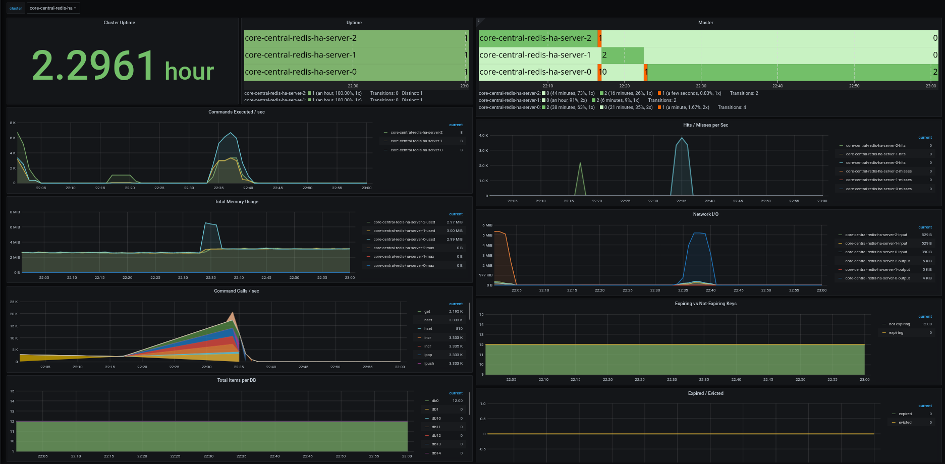 Improvement over https://grafana.com/grafana/dashboards/763 and https://grafana.com/grafana/dashboards/4074 by using name of the redis cluster instead (via the job label on prometheus)