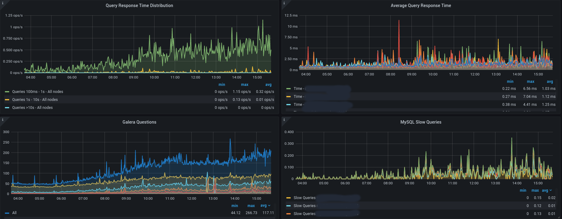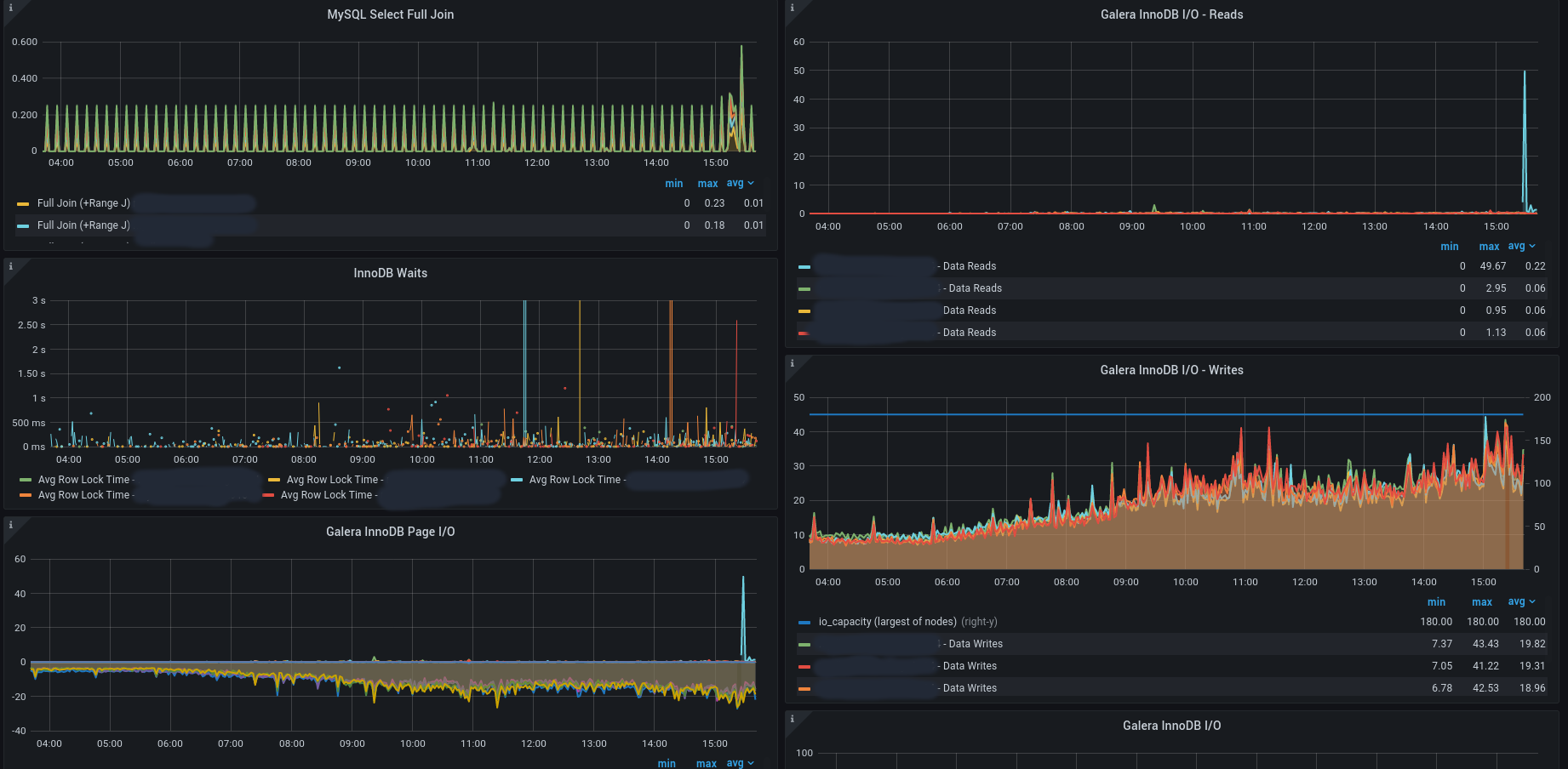MariaDB Galera Cluster Workload Overview Cluster workload metrics (Innodb metrics, I/Os, waits, etc) and some cluster perf metrics.