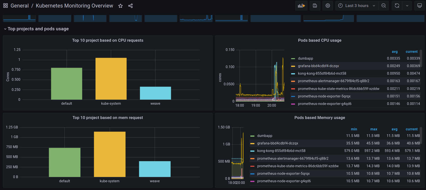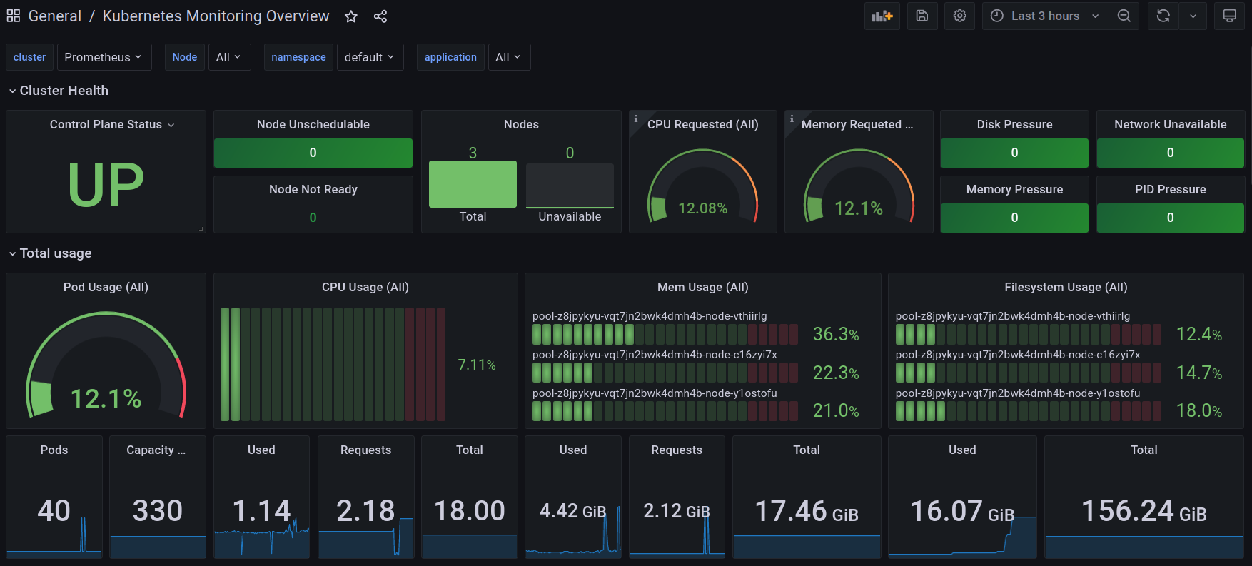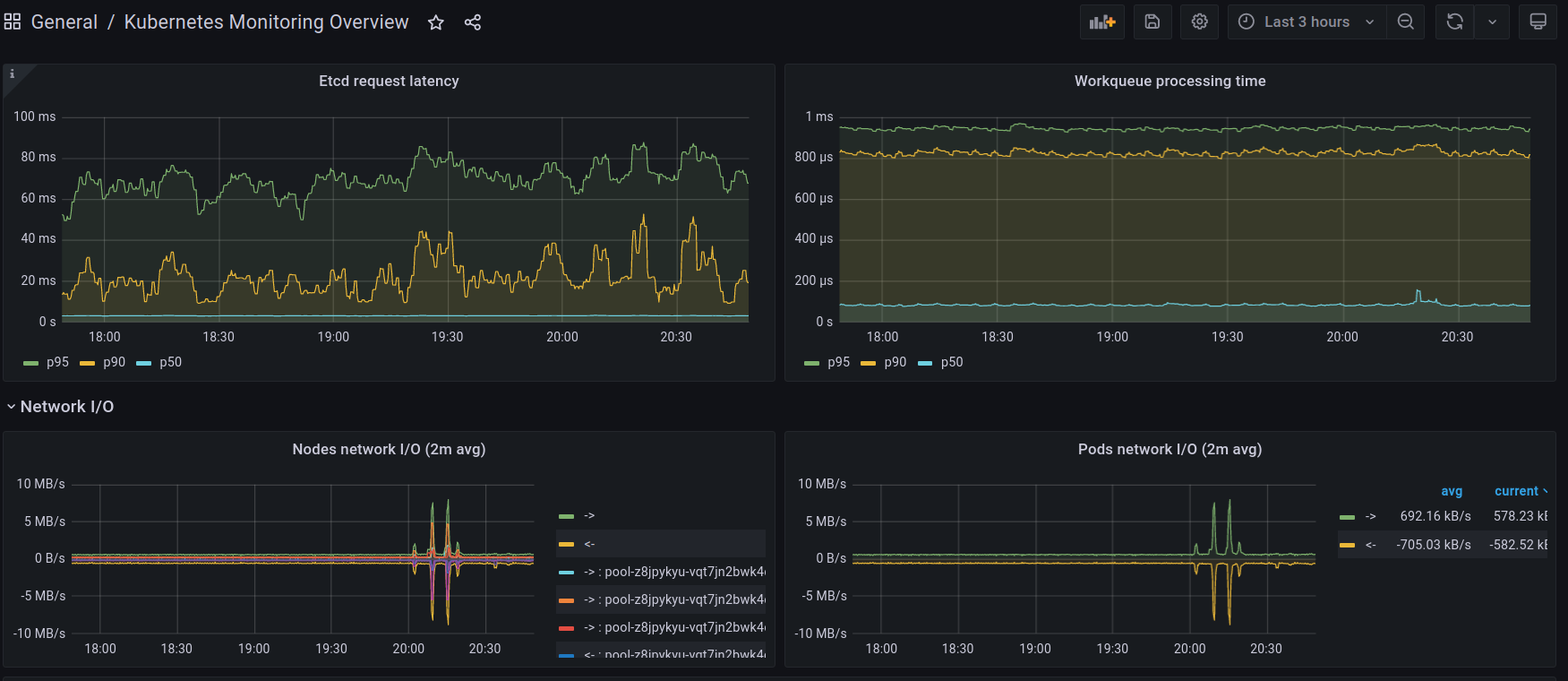 Dashboard for Kubernetes cluster with Prometheus.