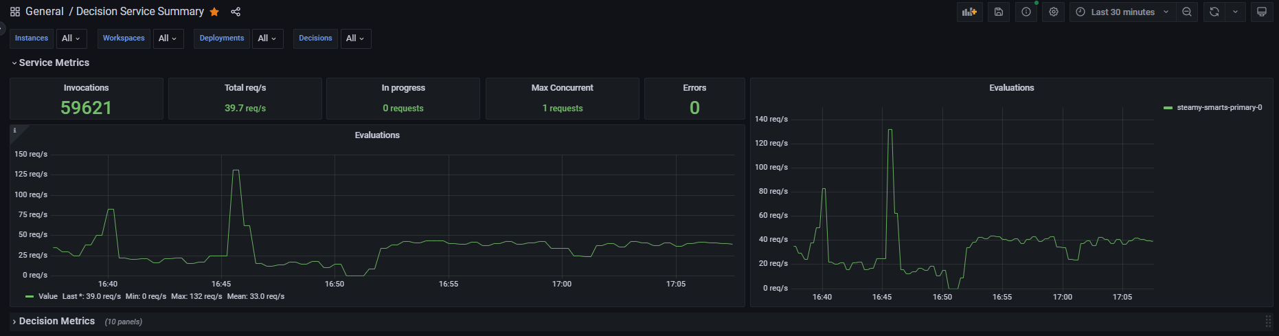 This dashboard is for use with Sparkling Logic SMARTS(tm) Decision Services and can show you the following information for decision evaluations
