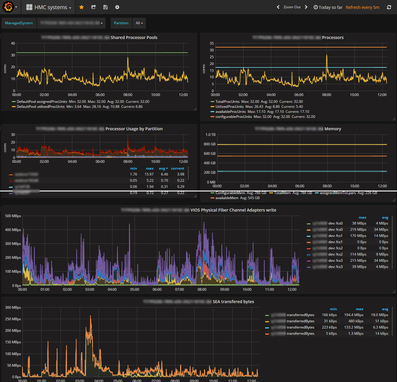 This dashboard display IBM Power system metrics extracted from the HMC with nmon2influxdb.