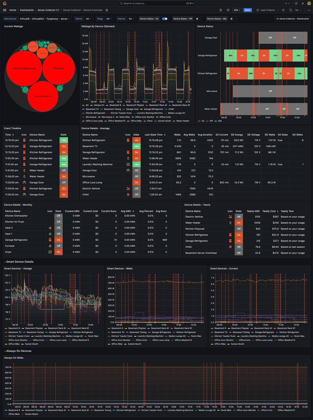 Always On Devices: This shows which devices the Sense monitor has detected have an Always On wattage component. This may be different from actual wattage and tends to update less frequently.