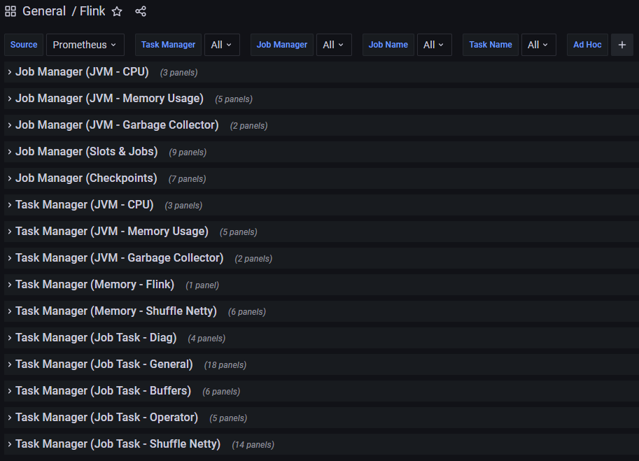 Dashboard for Job Manager and Task Manager, prepared for versions: 1.12.X, 1.13.X