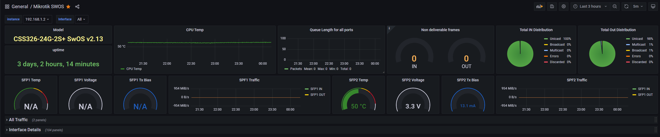 It's a Dashboard built specifically for Mikrotik's SWOS. It has been adapted from multiple RouterOS Dashboards here. This is not a dashboard for RouterOS - it's only the switching part