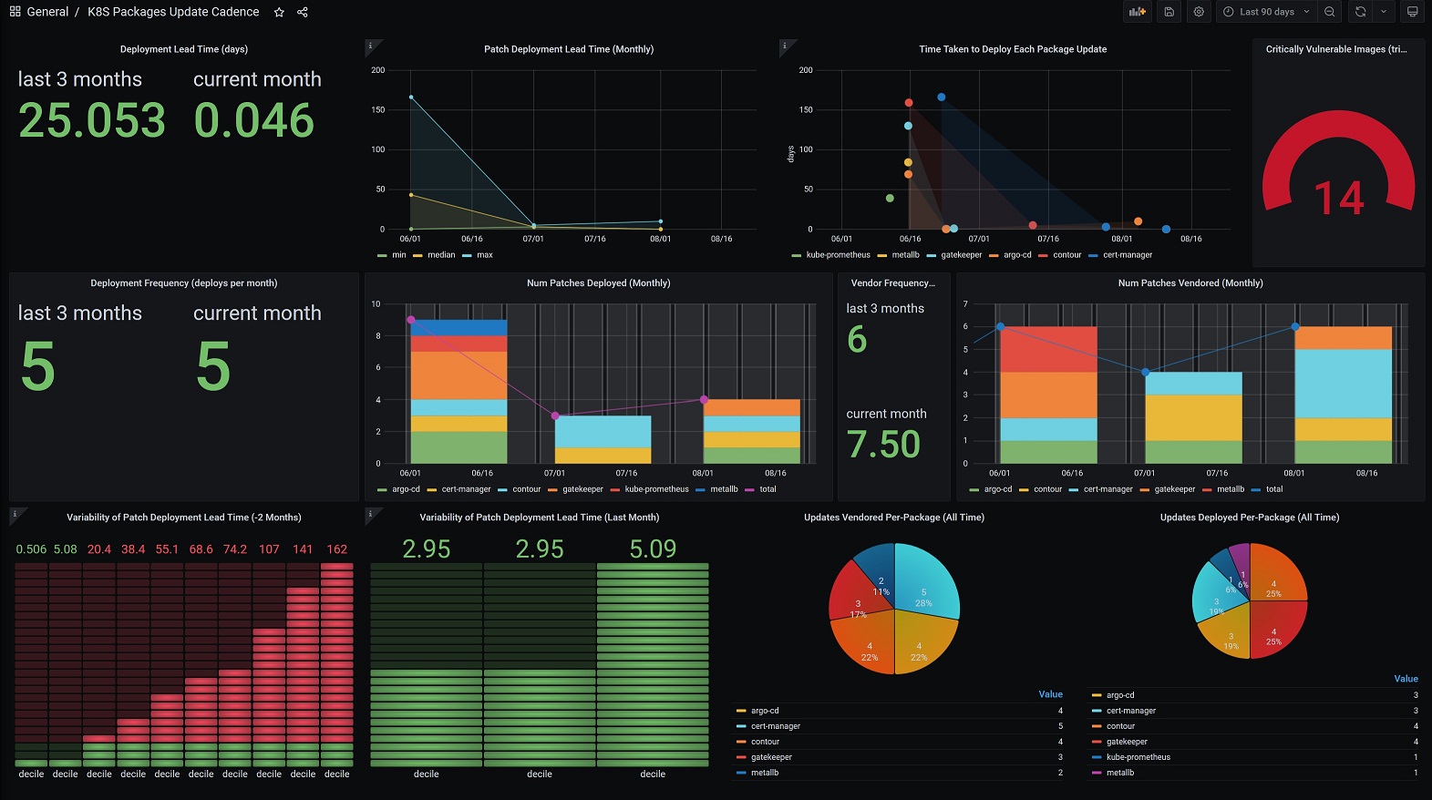 Uses git history of a gitops repo to show update cadence in terms of deployment frequency and lead time.
