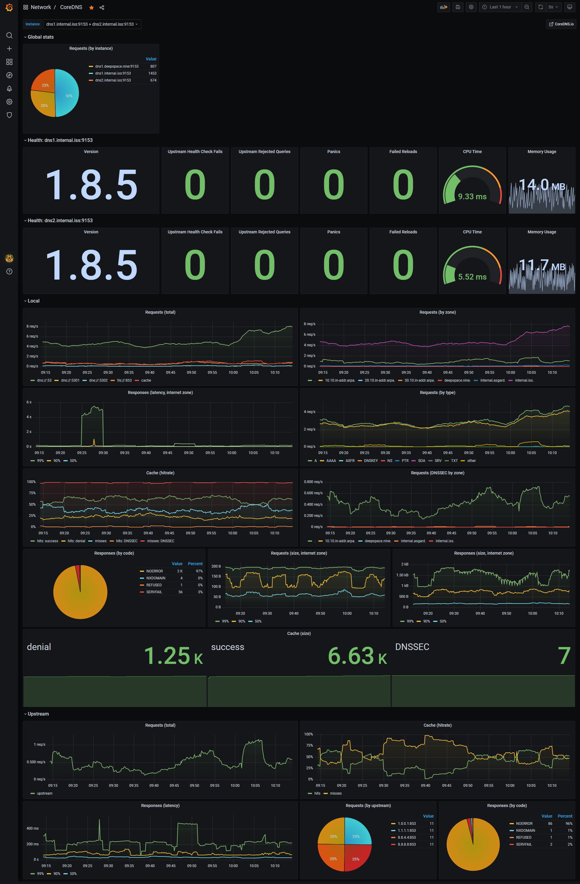 A dashboard for the CoreDNS DNS server with updated metrics for version 1.7.0+. Based on the CoreDNS 1.7.0+ dashboard by ejkinger