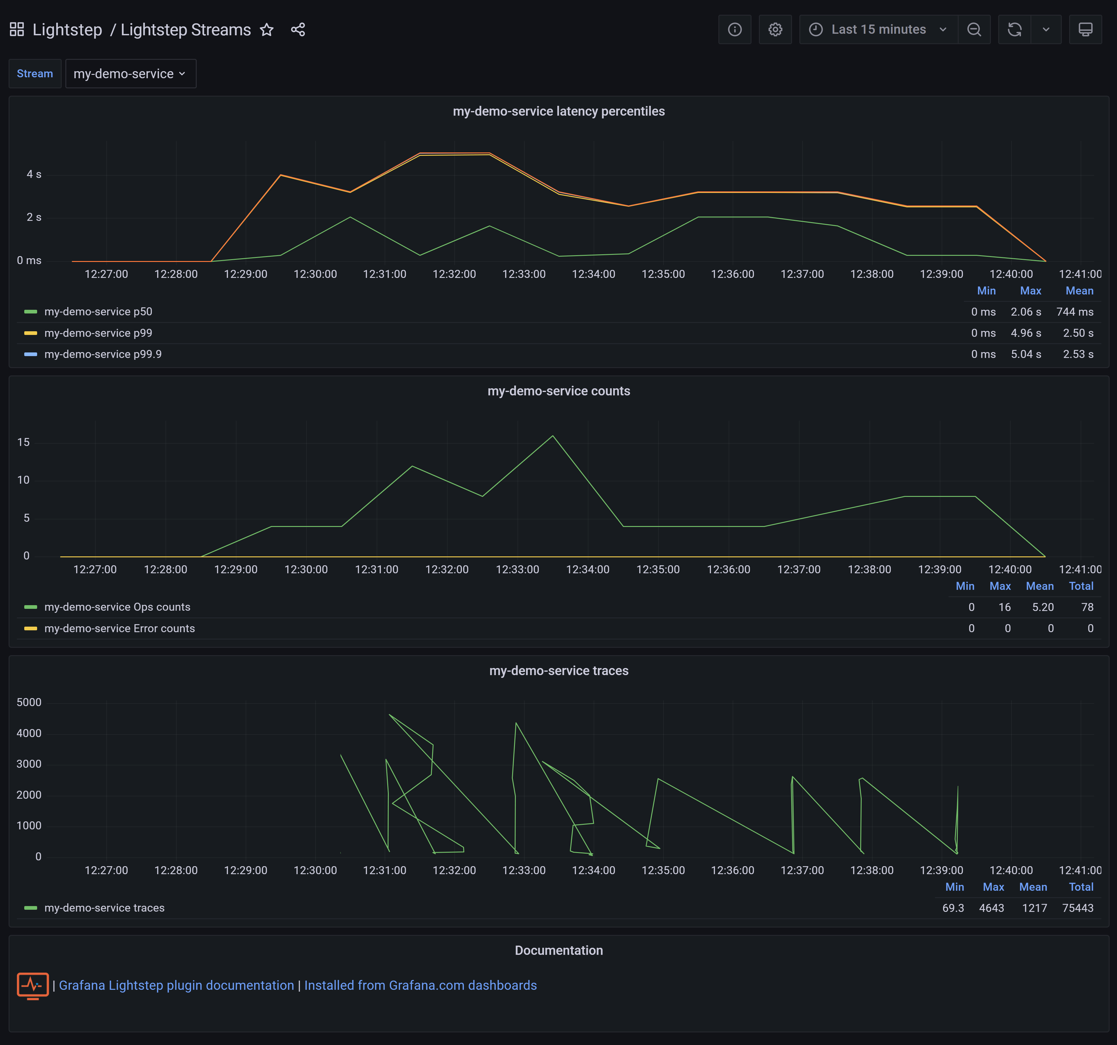 Visualize Lightstep streams