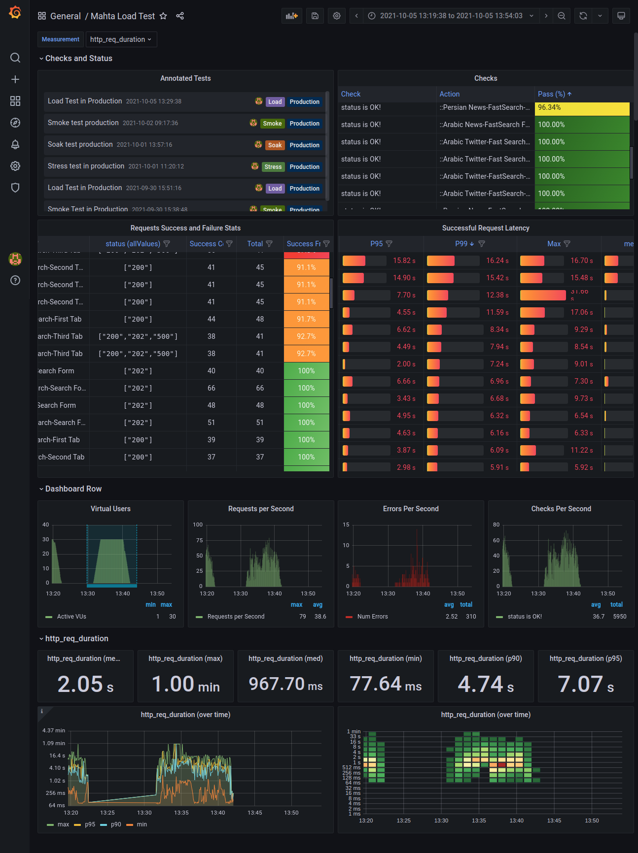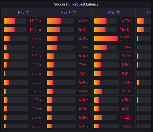 - "Successful Requests Latency" table to watch slow and fast requests with more detail.