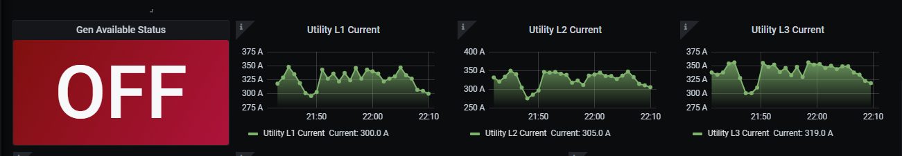 Dashboard for Generator model MCM 3320. It's contains the following metrics: