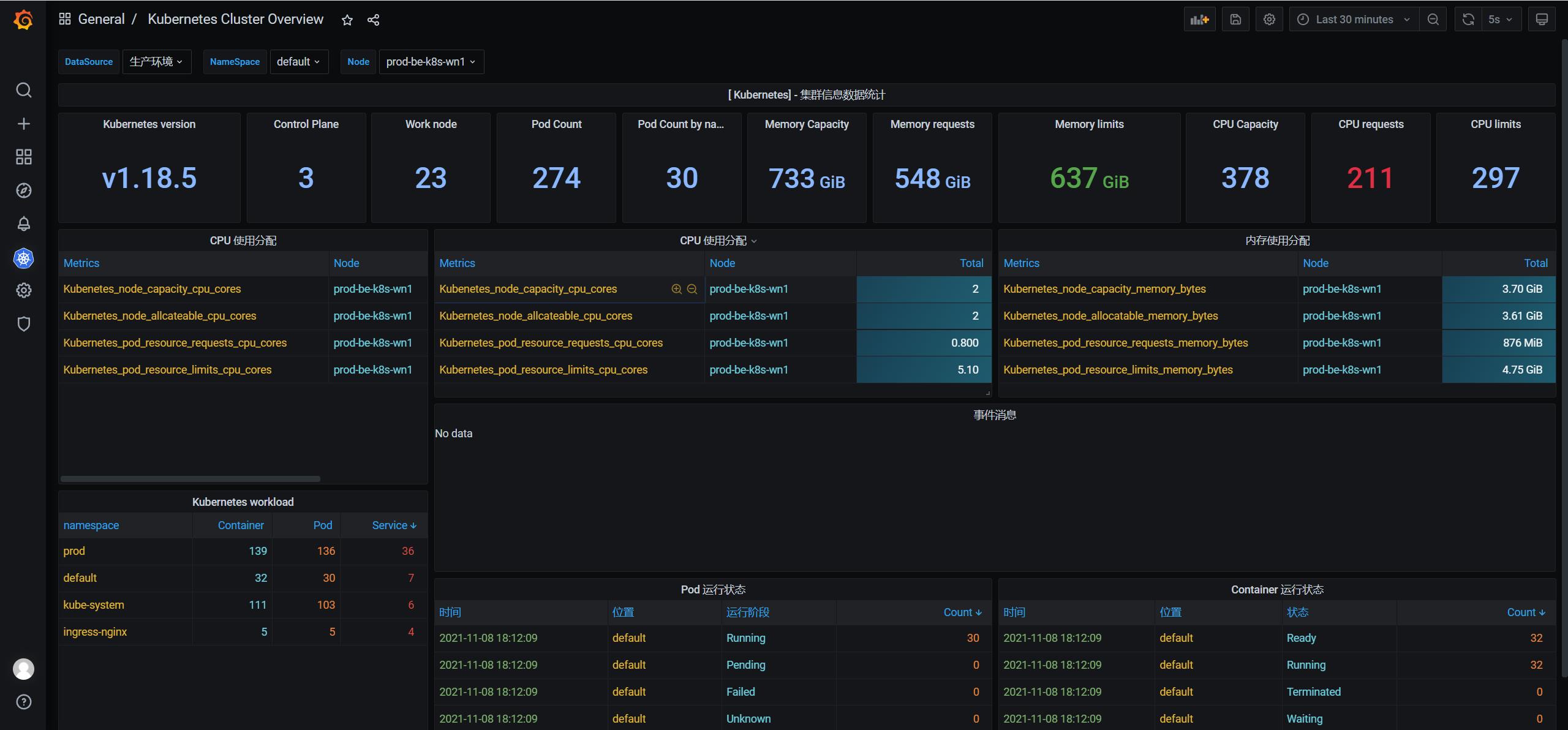 Monitor your Kubernetes deployment with prebuilt visualizations that allow you to drill down from a high-level cluster overview to pod-specific details in minutes.