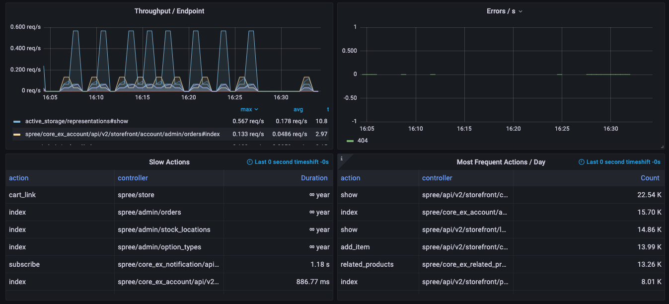 Basic metrics for web applications built with Ruby on Rails (Yabeda ).
