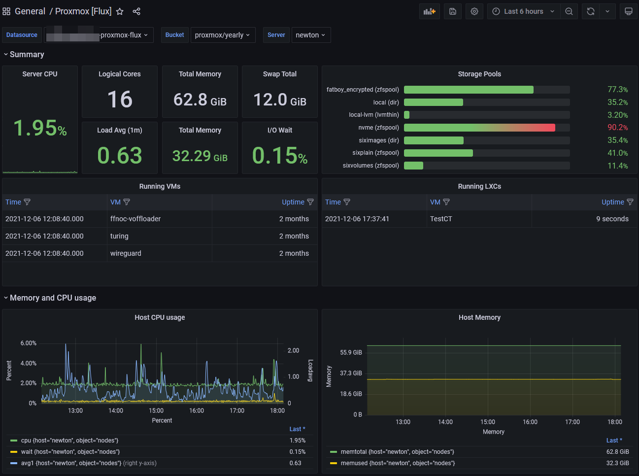Since Proxmox VE now has a native exporter for writing host/cluster metrics to InfluxDB 2.0 oss or cloud, i have written this grafana dashboard - completely in fluxlang.