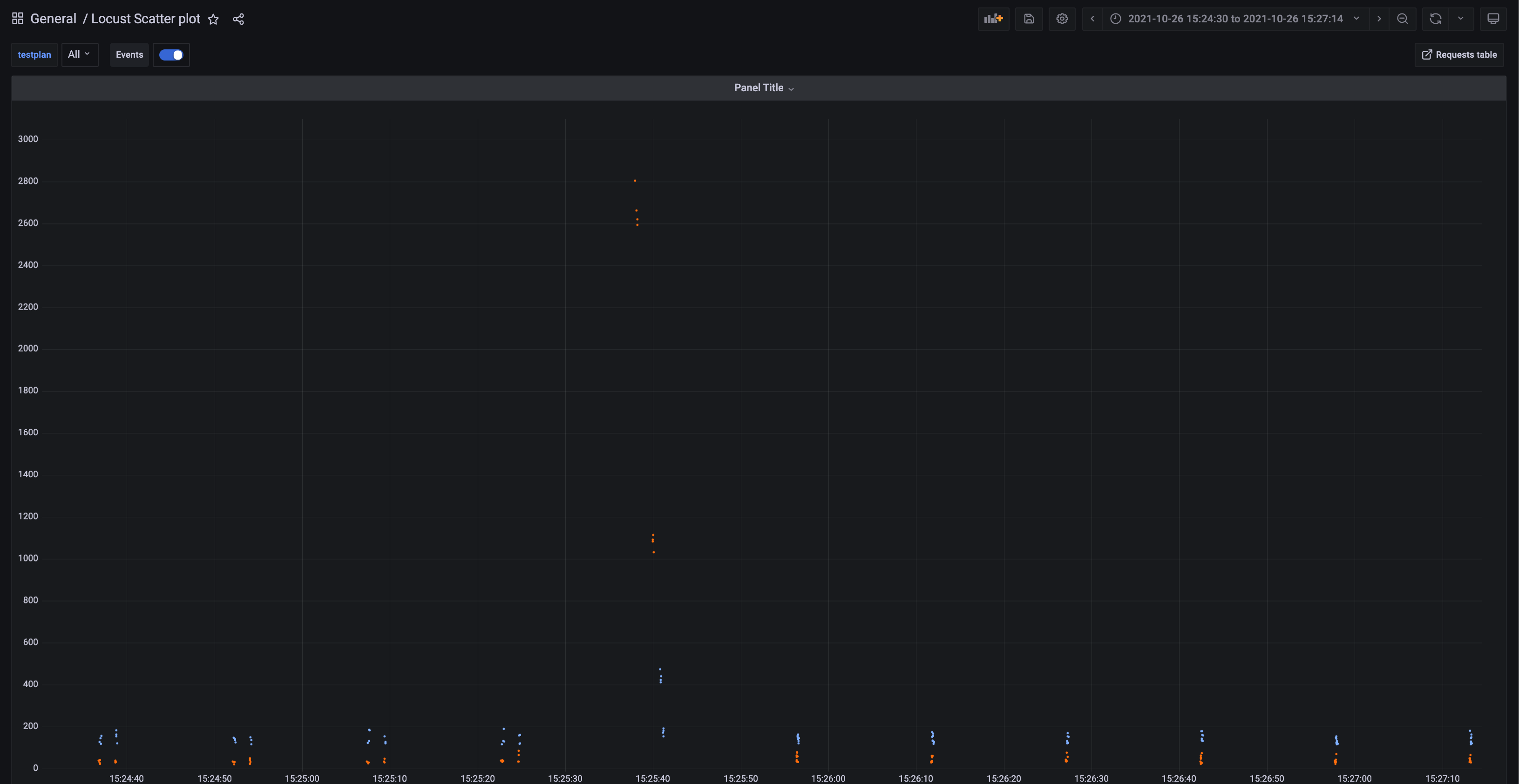 A graph that shows the response times of individual requests