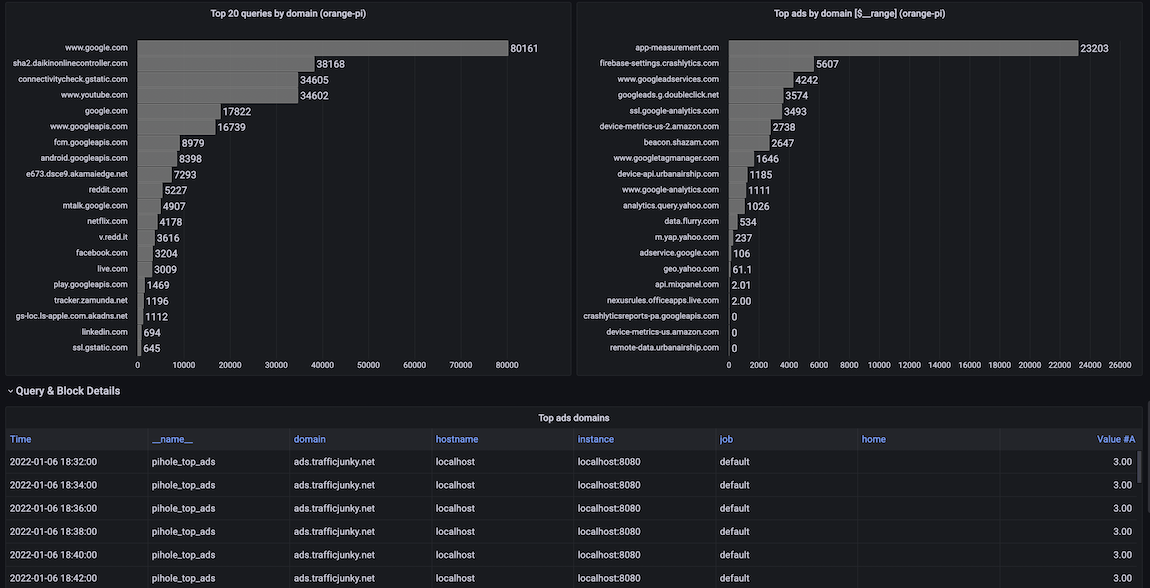 This is a PI-Hole dashboard when using the https://github.com/eko/pihole-exporter Prometheus exporter