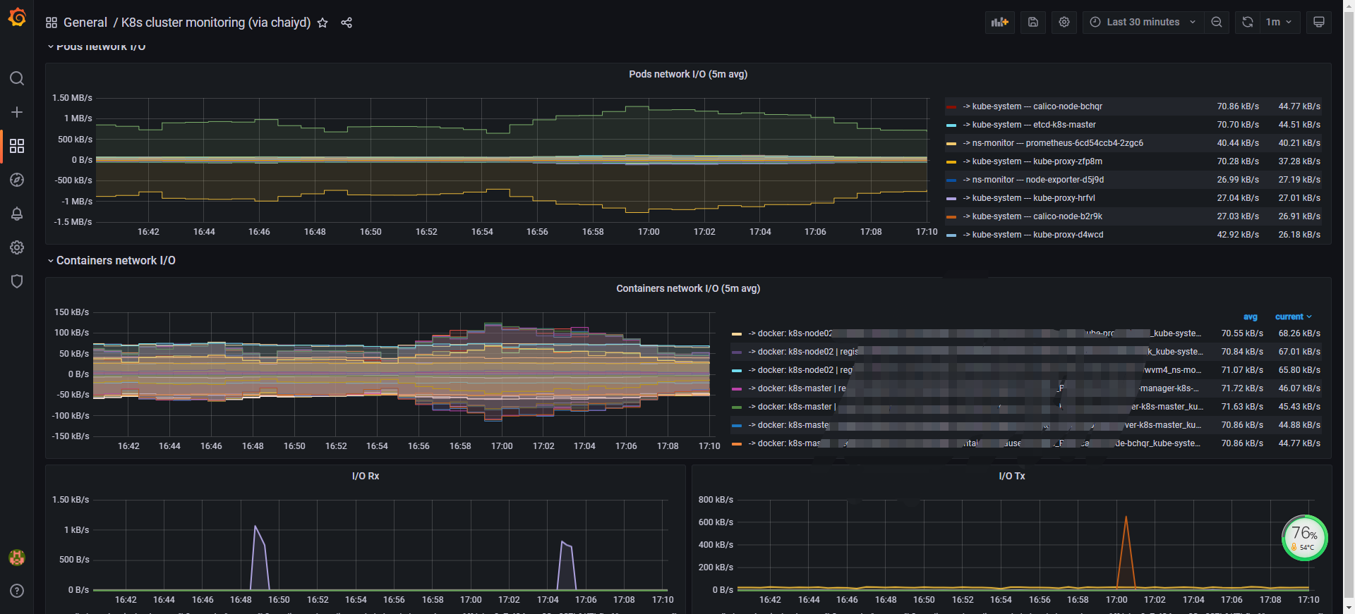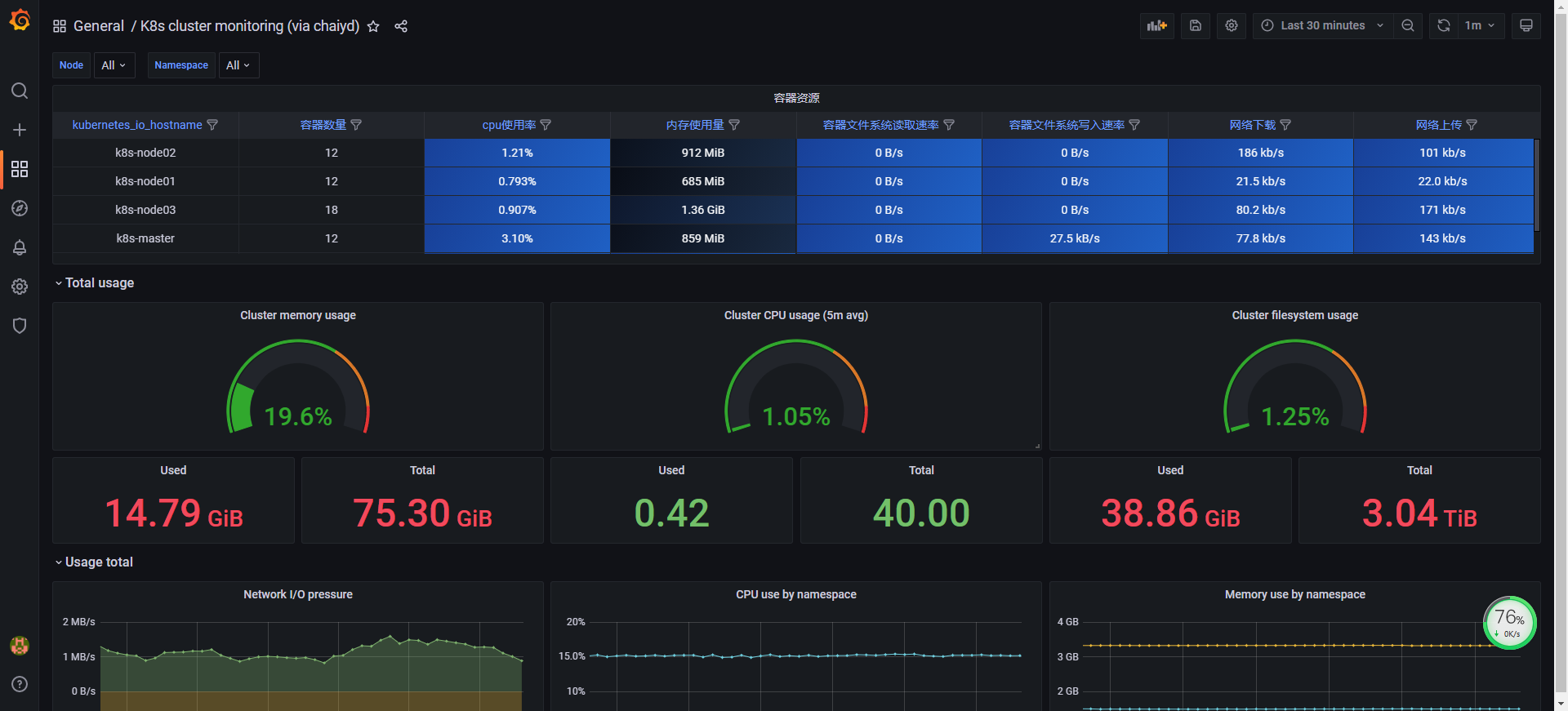 原模版 id12870 本来想用id13105的表格,单独用网络不显示等等,奈何太小白了没改成功,只能等大神出来改了 版本k8s1.20.6 普罗米修斯 2020.11月份的下载最新的 grafana8.x 用的默认自带的k8s+cadvisor