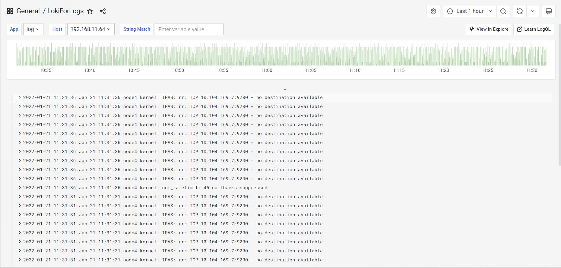 The LokiForLogs dashboard uses the loki data source to create a Grafana dashboard with the graph and logs panels.