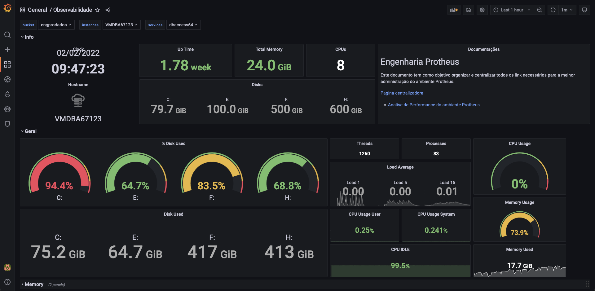 Este dashboard pertence a uma série de documentações da Engenharia de Dados Protheus, que auxilia no monitoramento dos ambientes de desenvolvimento, homologação e produtivo.