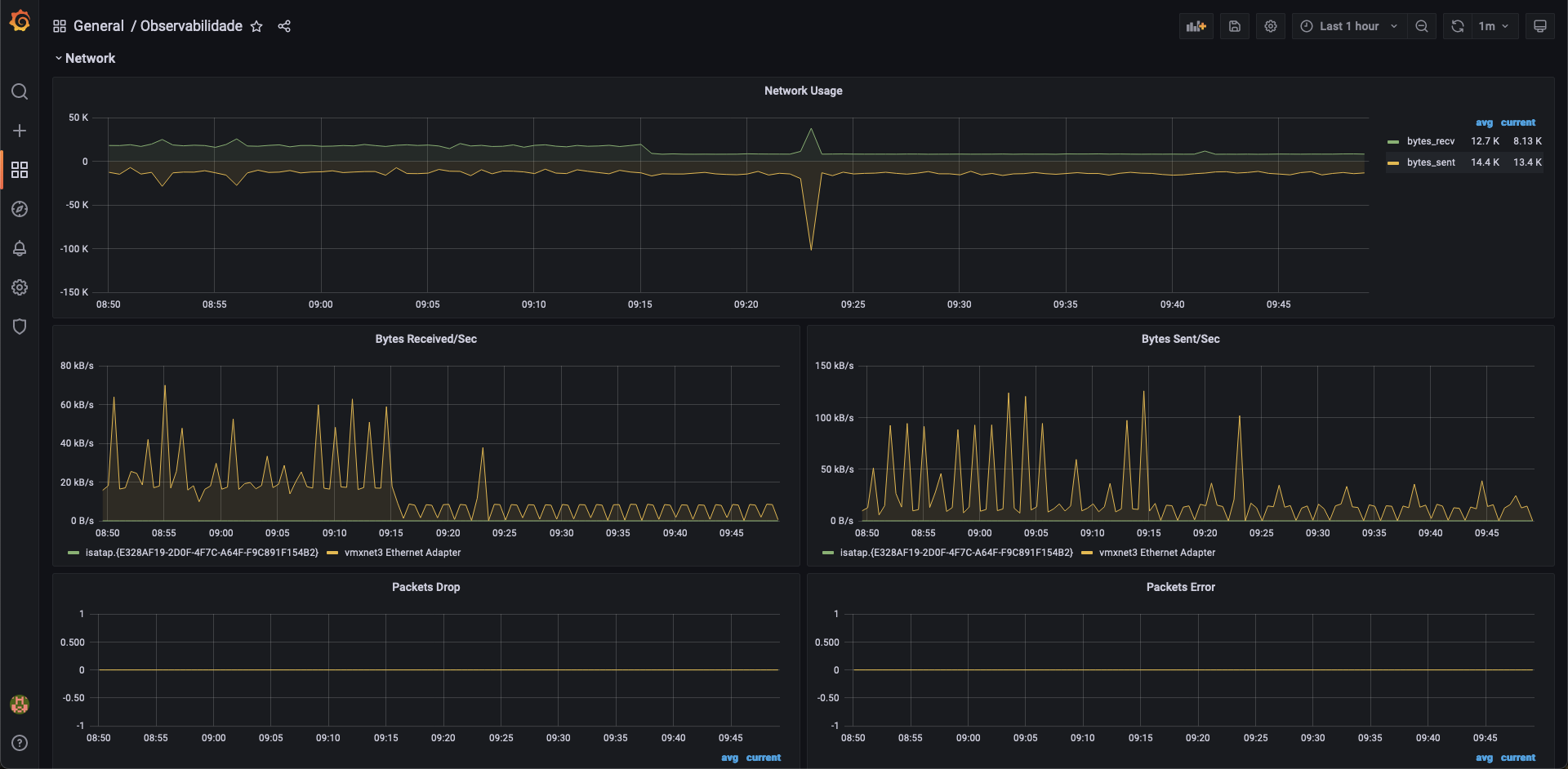 Velociade de recebimento e envio por bytes (Bytes Recived/Sec e Bytes Sent/Sec);