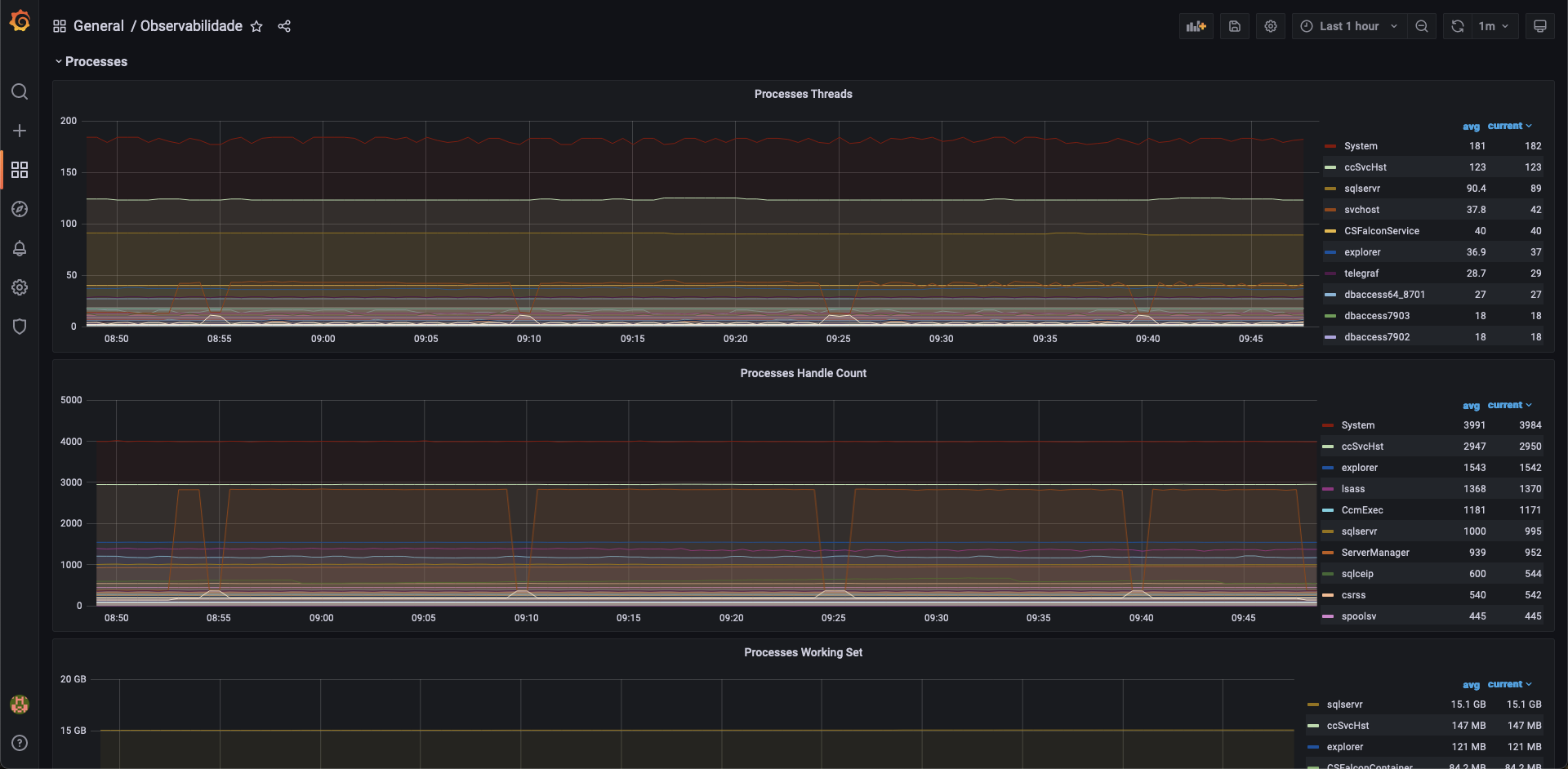 Quantidade do consumo de memória pro cada processo (Processes Working Set).