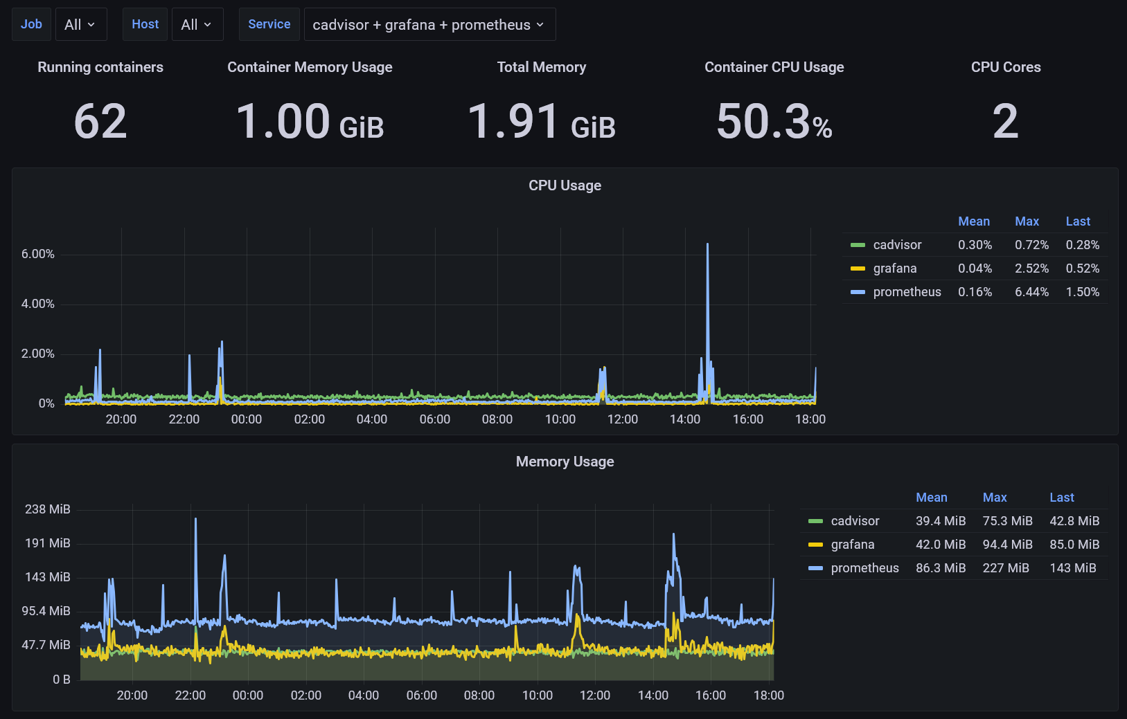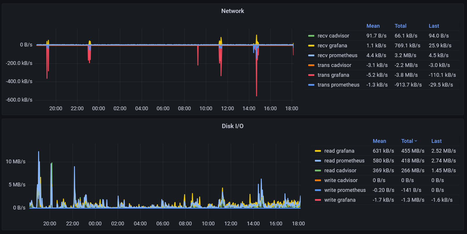 container_cpu_user_seconds_total: cpucontainer_memory_usage_bytes: memorycontainer_network_receive_bytes_total: networkcontainer_network_transmit_bytes_total: networkcontainer_fs_reads_bytes_total: diskIOcontainer_fs_writes_bytes_total: diskIO