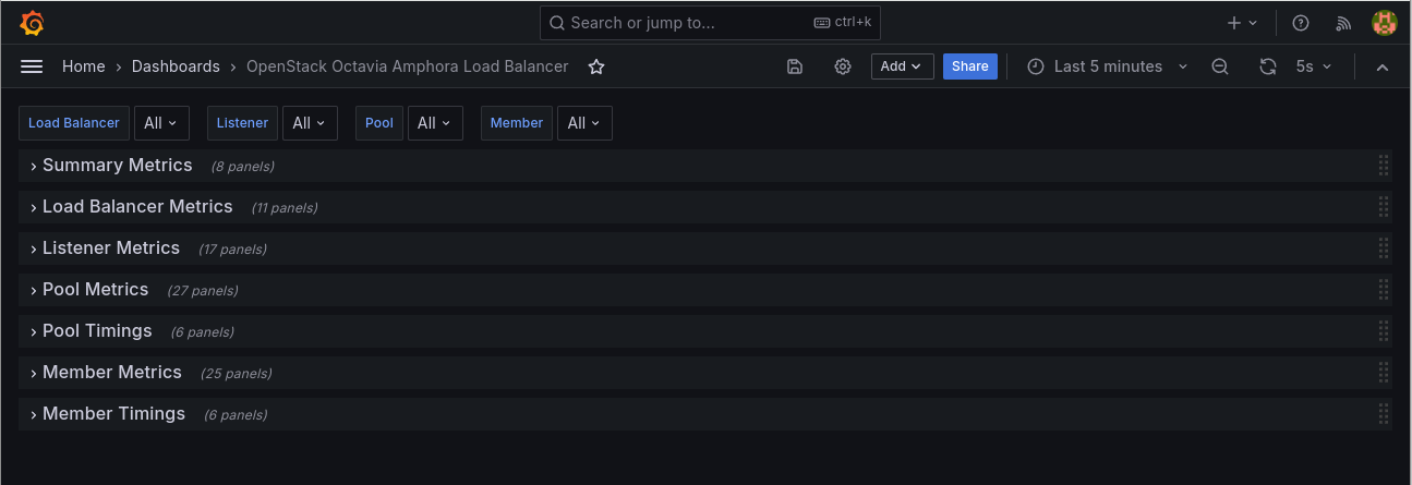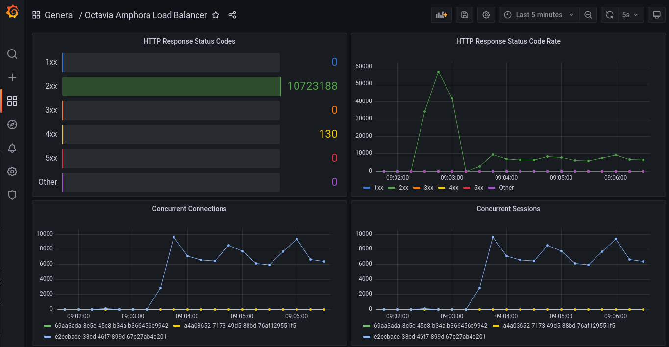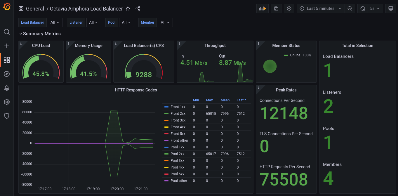 A dashboard for OpenStack Octavia network load balancers. Starting with the Yoga release of OpenStack, Octavia supports creating a Prometheus exporter endpoint as a listener on your load balancers.