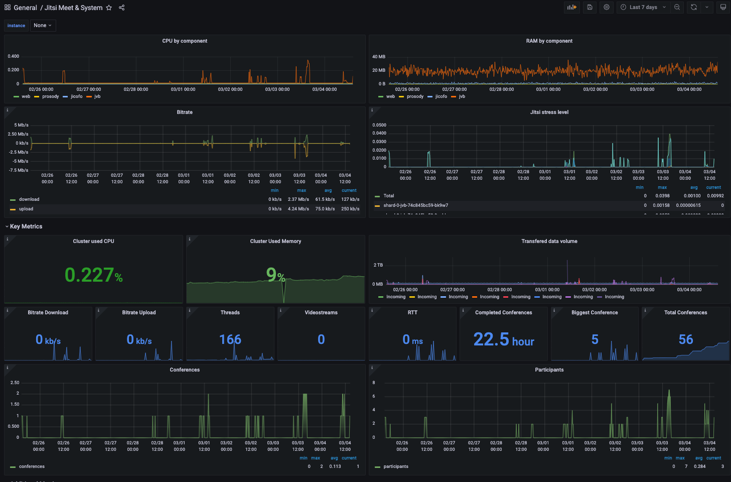 Dashboard for Jitsi Meet Exporter running on Kubernetes