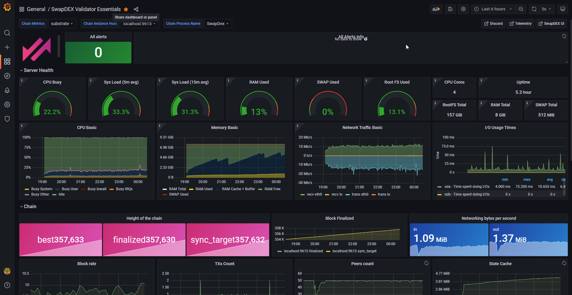 SwapDEX chain main metrics, suitable for node monitoring in 2022 - Tutorial: https://docs.swapdex.network/validator-guides/node-monitoring/