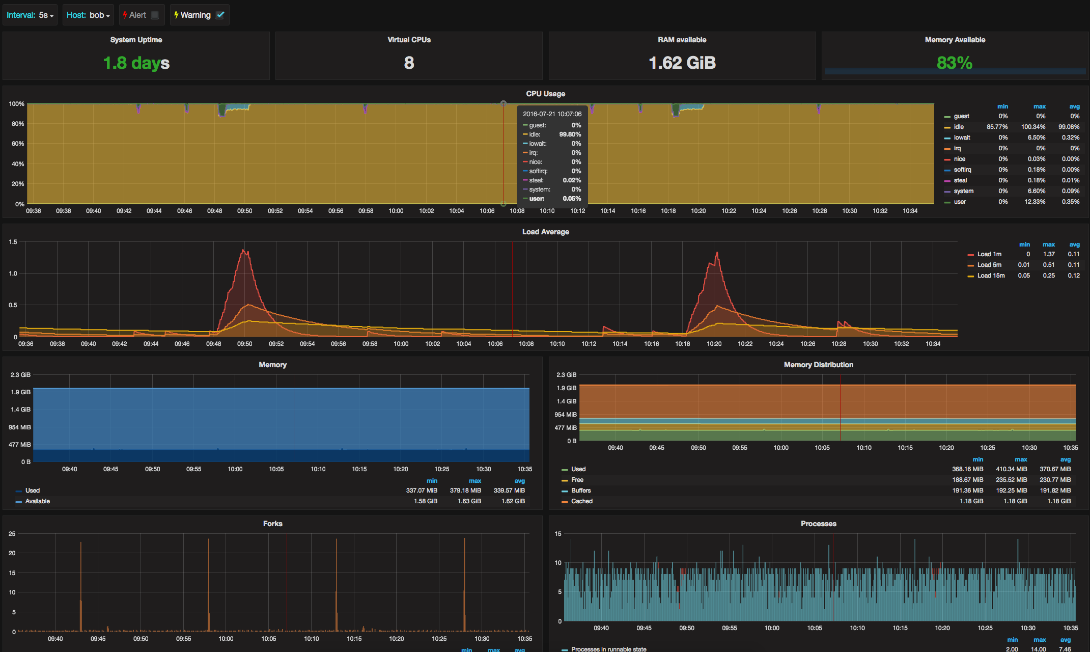Show classical system metrics of your servers. It's also linked alerts of the selected servers (if alert are set). Need to use tag name for servers. The tag used is "alias" but you can change it in templating.