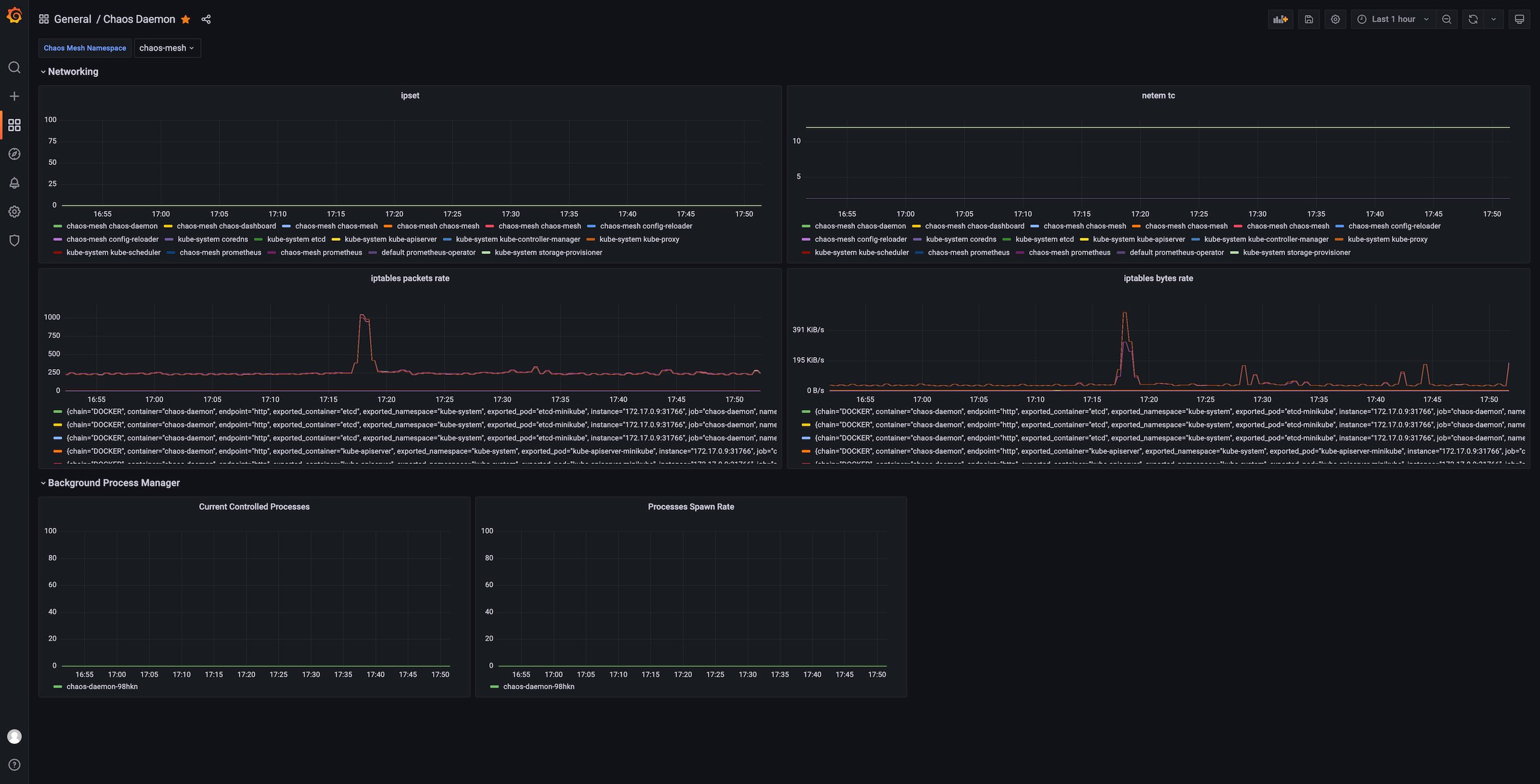 Monitoring performance data provided by chaos-daemon, which is the powerful agent in Chaos Mesh. Providing metrics about networking and background-process-manager.