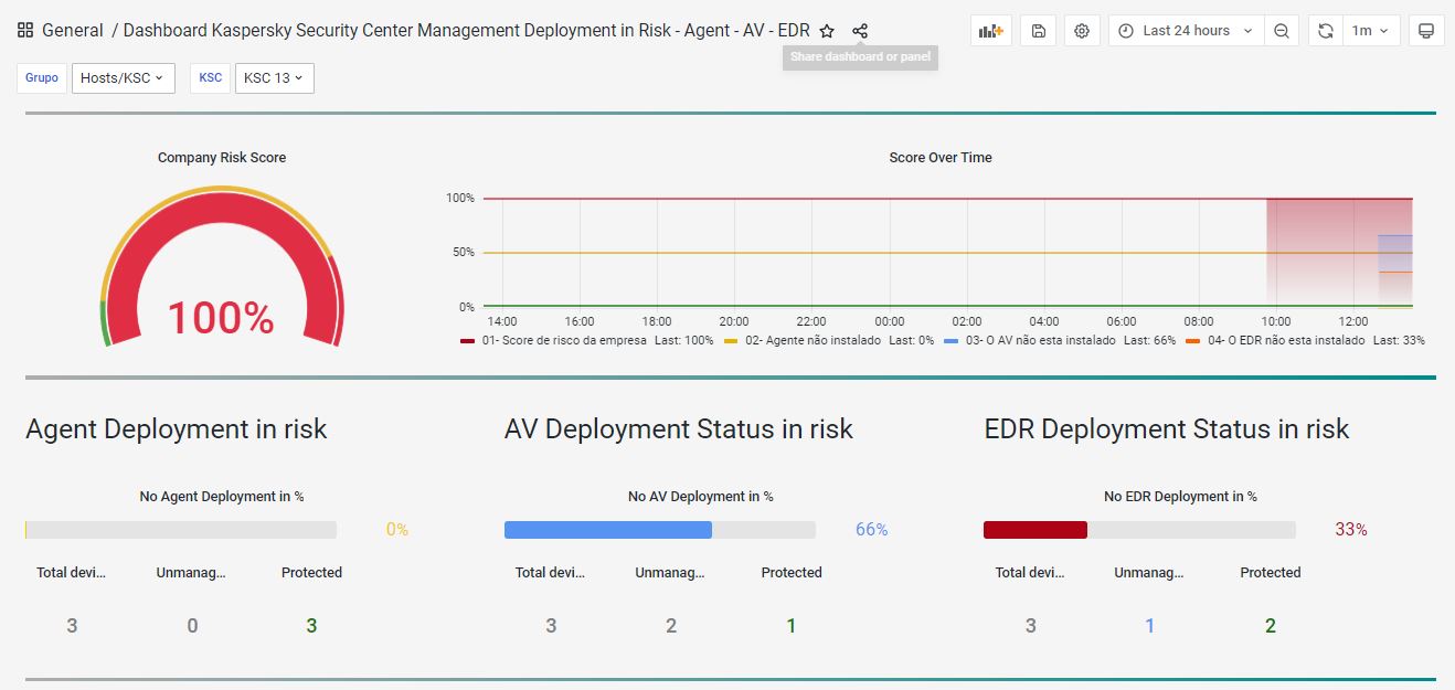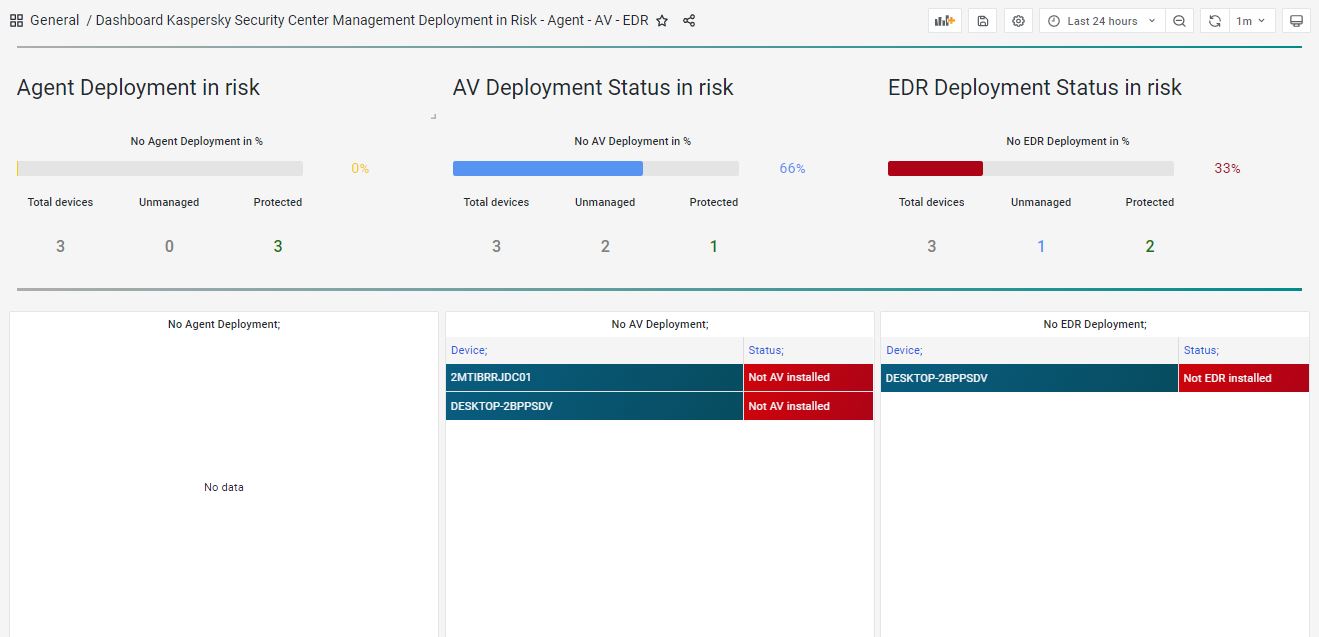 96- Dashboard Kaspersky Security Center Management Deployment in Risk - Agent - AV - EDR