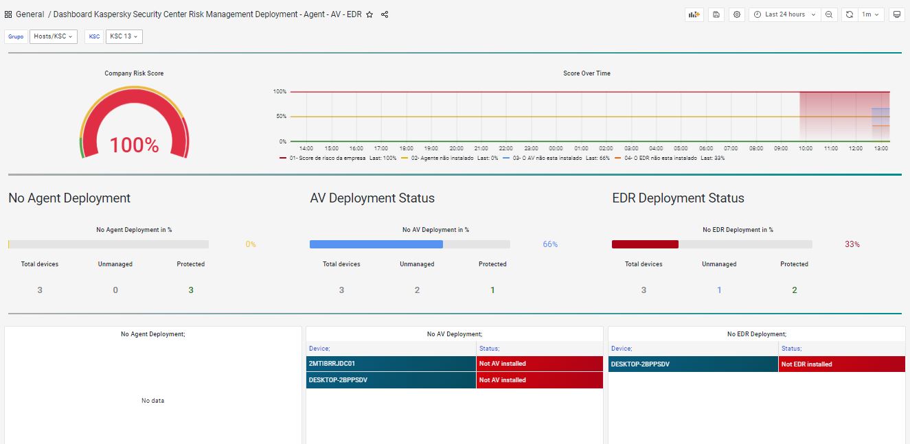 96- Dashboard Kaspersky Security Center Management Deployment in Risk - Agent - AV - EDR