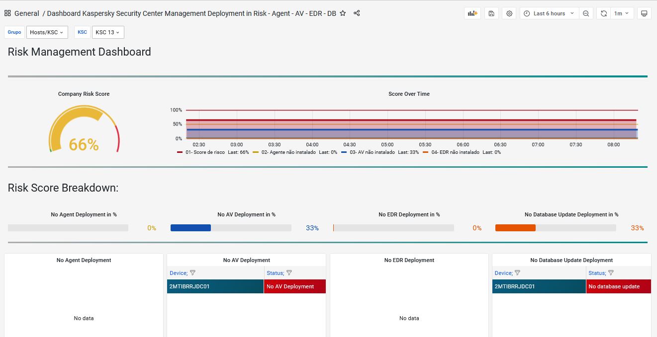 97- Dashboard Kaspersky Security Center Management Deployment in Risk - Agent - AV - EDR - DB