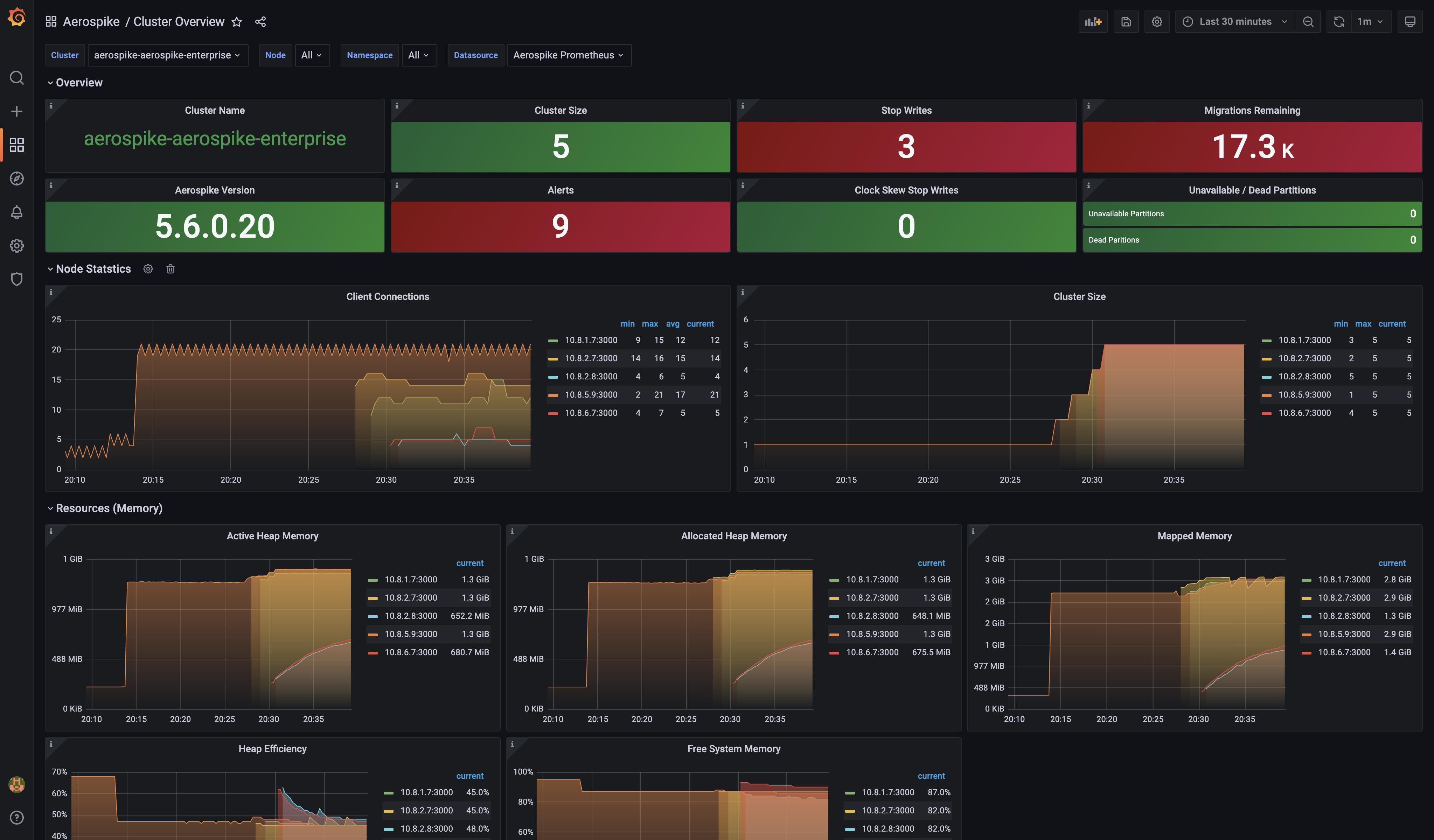 Aerospike's Monitoring Stack extracts operational metrics from Aerospike database clusters for visualization and analysis in Prometheus and Grafana.