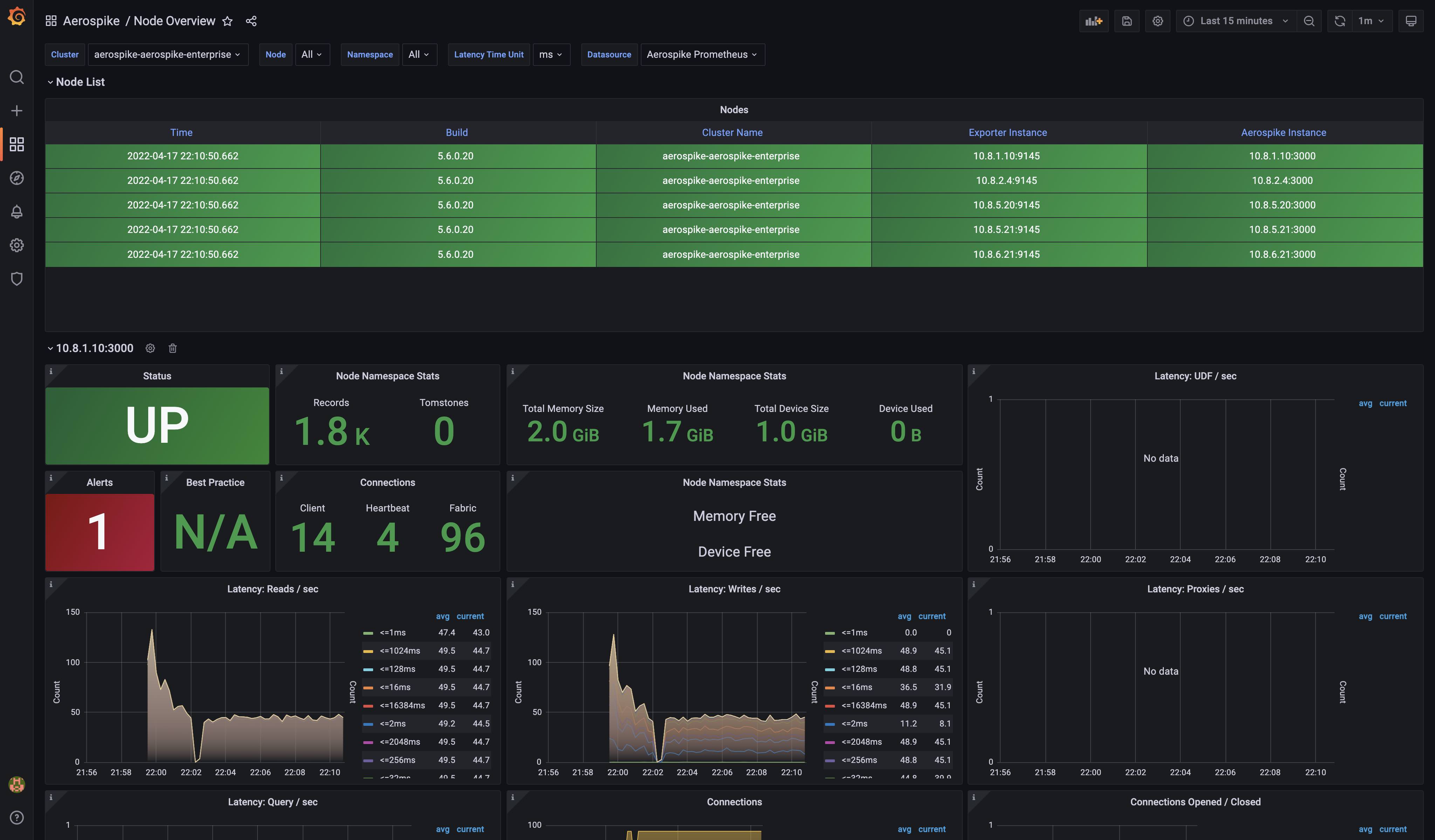Aerospike's Monitoring Stack extracts operational metrics from Aerospike database clusters for visualization and analysis in Prometheus and Grafana.