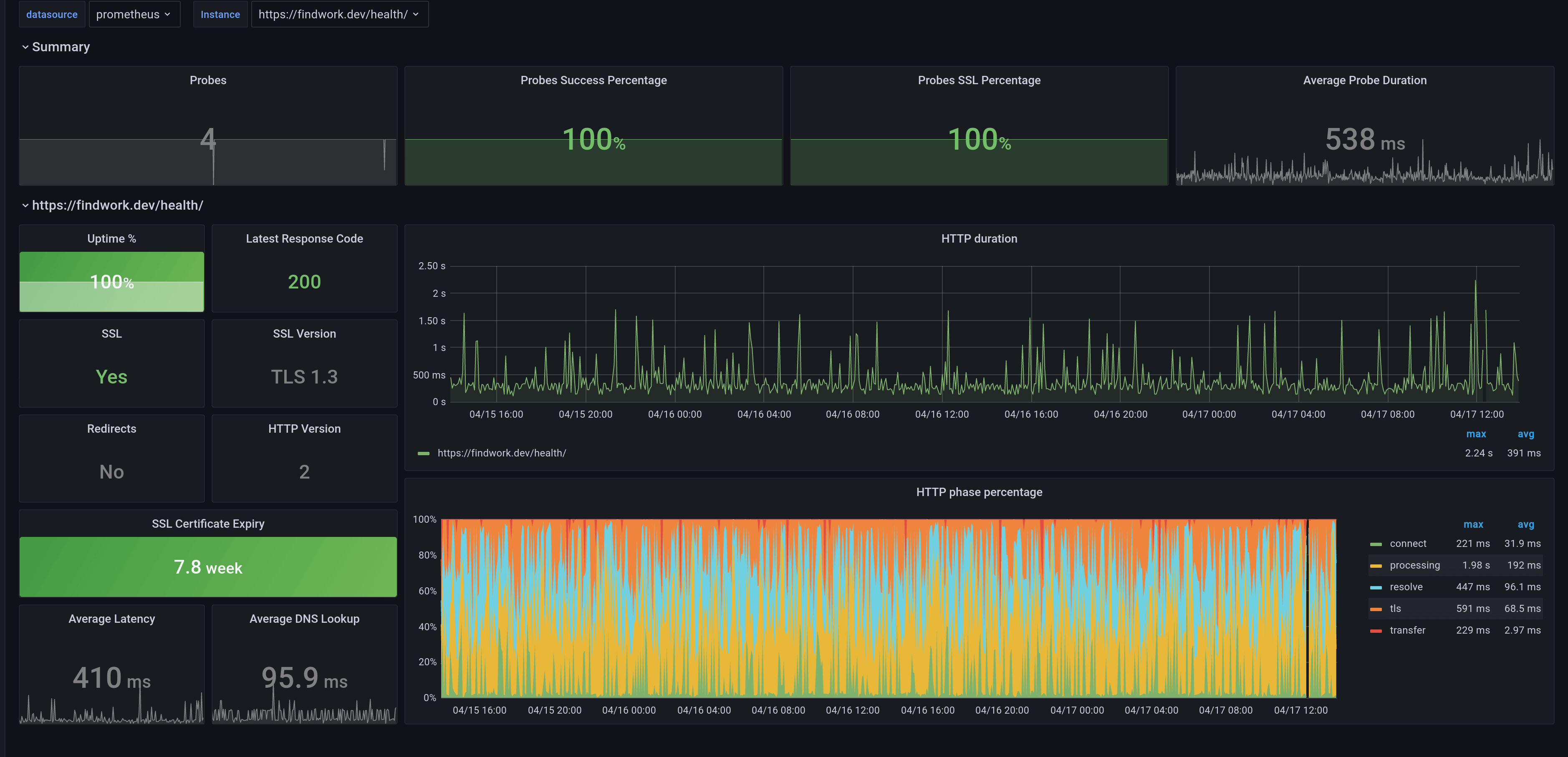 A dashboard that monitors the Blackbox-exporter. It is created using the blackbox-exporter-mixin for the the blackbox-exporter.