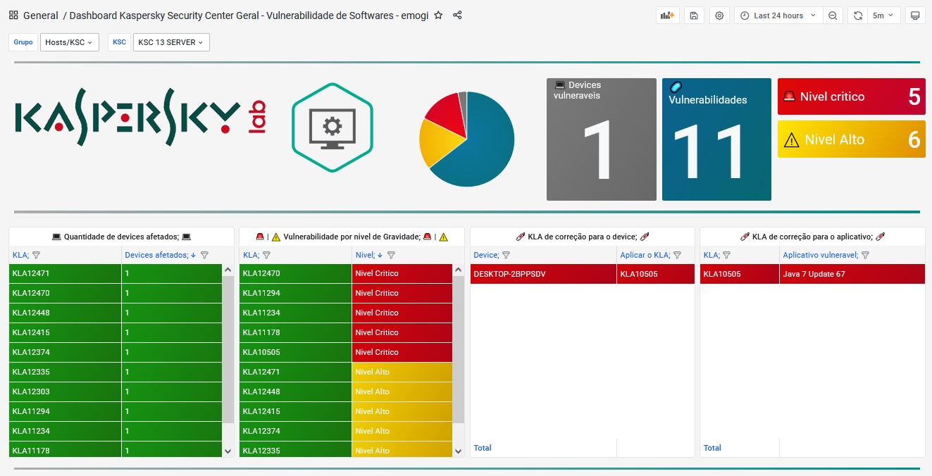 102- Dashboard Kaspersky Security Center Geral - Vulnerabilidade de Softwares - emogi