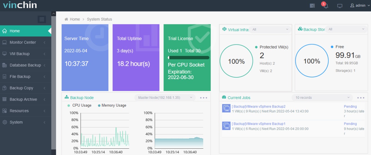104- Dashboard Vinchin Backup & Recovery-Installation, Deployment, and Data Protection in VMware & Hyper-V environment