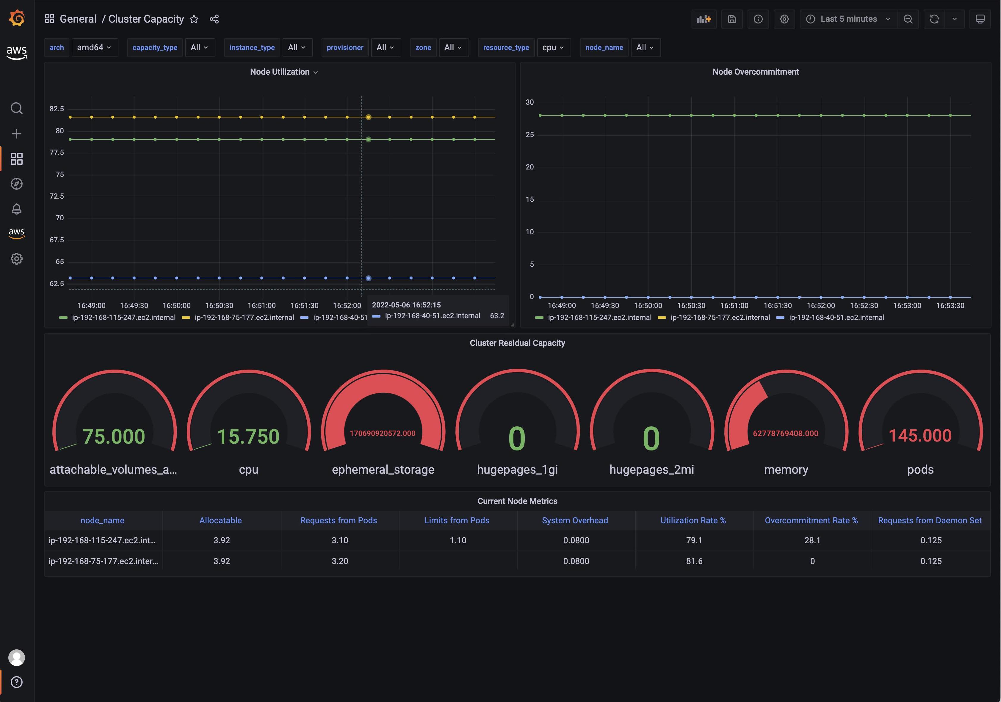 Dashboard showing capacity provisioned/managed by Karpenter